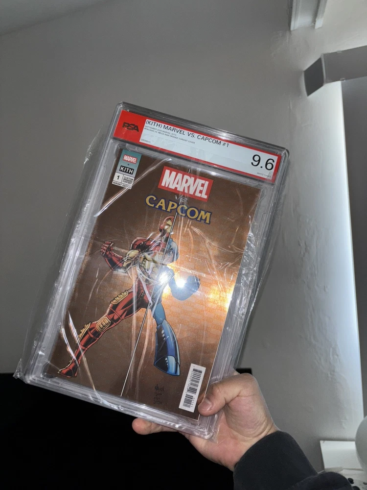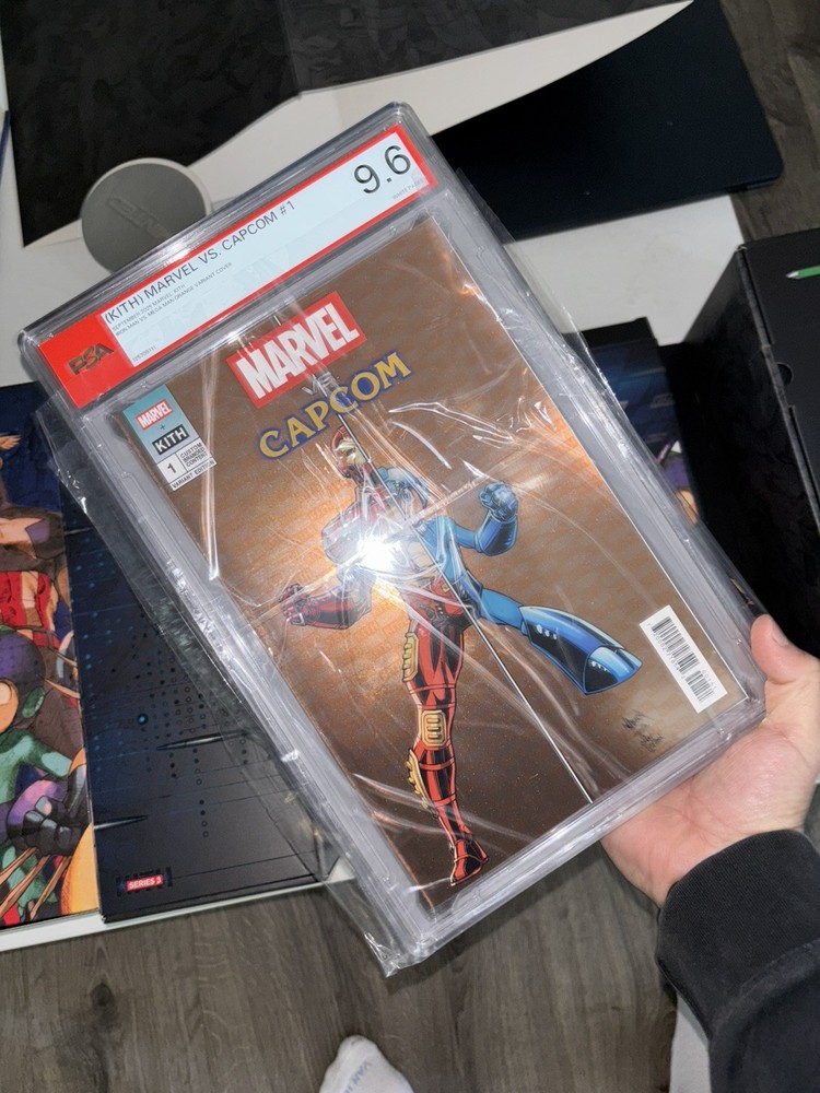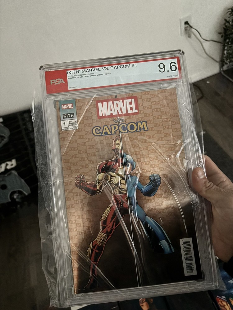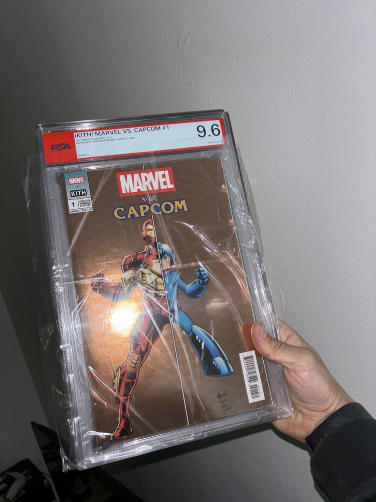 The Kith Marvel vs Capcom #1 Orange Variant Cover features a dynamic illustration of Iron Man battling Mega Man, making it a highly sought-after collectible for comic book fans. With artwork by Todd Nauck and written by a talented team including Andrew Hennessy and Ron Lim, this single issue from Marvel Comics is a must-have for any collector of modern age comics. The vibrant color style and variant cover add to the appeal of this unique comic book, showcasing the intersection of the Marvel and Capcom universes in a visually striking way. Ready to ship Comic only still sealed brand new