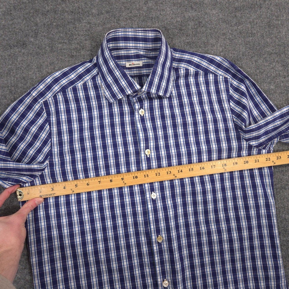 Kiton Dress Shirt Mens 42 16.5 Blue White Plaid Cotton Long Sleeve Made In Italy Great condition. Please see photos for measurements. Sold as pictured. Thanks for looking! -Measurements are approximate, please measure and check your favorite items at home to estimate fit -100% authenticity guaranteed -Items typically ship next business day