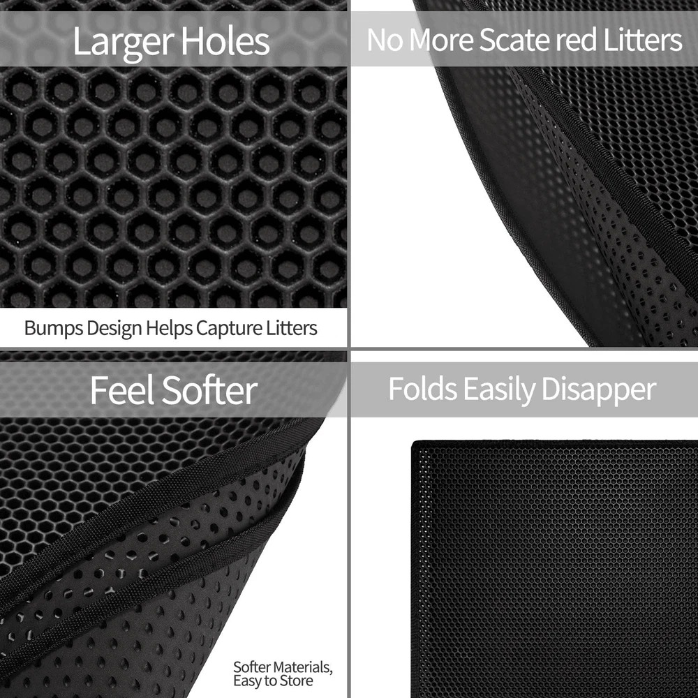 Our normal delivery time is 1-3 working days, which is not 100% guaranteed. The normal delivery time is about one week. Due to some uncontrollable reasons, if the logistics are not updated in time, please contact us. After the order number is uploaded, we do not accept refunds due to the lack of updates in logistics. If it has not been updated for more than 7 days, you can apply for a dispute. We will deal with it according to the actual situation. We do not accept orders from platforms such as Tiktok shop,TEMU, eBay, etc. Prevent Litter Scattering Around: Double-layer honeycomb design helps you gather cat litter on the upper layer and let it go through the holes down to the bottom layer. Works great with covered litter boxes, metal litter boxes, cat boxes, large cat litter boxes, and sifting litter boxes. It is your trap litter cat litter catcher mat. Urine Proof Mat: Bottom layer is waterproof and also slip-resistant which will not allow any liquid to go through and is easy to move. If you have cat vomit on the mat, you can hose it off, easy to clean and be dry. Protect your hardwood floors and carpets from nasty urine stains. Prevent the cat's urine from getting everywhere. Easy To Clean: Just wash it with water or use a vacuum and then blow-dry it. Save time and strength! Works great with any cat litter box, cat box, and most kitty litter.PLEASE measure to make sure this will fit--litter mat, cat litter mat, litter box mat, cat little box mat, and cat mats for Litter boxes. Soft On Paw: Many other mats use rough materials that may hurt the kitty. Our premium comfort mat is made of soft EVA material, gentle for sensitive cat paws. Cats even like to have an afternoon snooze on it. Independently laboratory tested non-toxic. Safe for your kitty and family. Durable Scratch-Resistant: Considering cats like to scratch, our mat is made of hard material, extremely strong, and durable. We are proud that we provide you with a tough and long-lasting cat litter mat product. Best Mat for Easy Cleaning and Recycling Smart design - With its deep grooves and honeycomb-shaped holes, it traps litter scatter that would otherwise spread on your bare floor, keeping your house mess free. Zero Odor Made of environmentally material, safe and non-toxic Durable Thick enough to withstand kitty's paws and vacuuming. Supreme Waterproof Washable and waterproof EVA, urine repels,s and odor deter. Keep Your Kitty's Paws Clean Finding your kitty litter on carpet, clothing, furniture, even your bed... is, well, disgusting. With our cat litter mat, your kitty's paws can get cleaned the second she steps on it. In addition, the cat litter that falls on or is trapped in the mat can be recycled easily. Size: 24x15\' Listing and template services provided by inkFrog