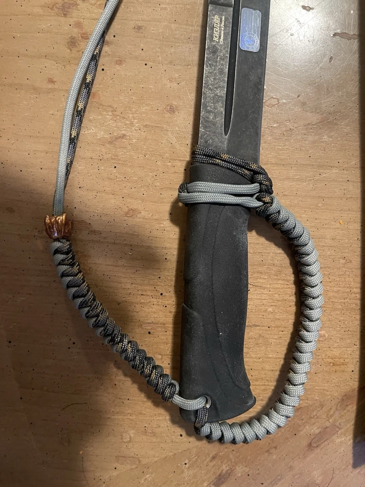 Kizlyar Supreme Fixed Blade Tactical Survival Knife With Paracord Lanyard. This knife is unused and I tied the paracord myself and it has survival paracord with fire starter in the paracord. Hopefully you never need it. This has NO box.