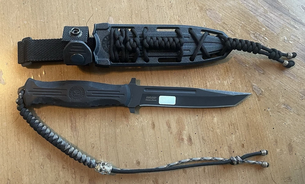 Kizlyar Supreme Russian Tactical Knife SK-19 Tanto Blade Kydex Sheath. I tied the paracord on here myself and the paracord itself has fishing line inside. This knife is unused and comes with NO box.