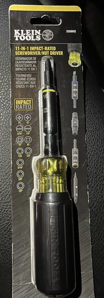 This Klein Tools 11-in-1 Multi-Bit Screwdriver - 32500HD is a must-have for any toolbox. With a variety of ten pieces, including nut drivers and cushion grip screwdrivers, this tool is perfect for any job. The yellow and black color scheme adds a pop of color to your workspace, while the durable plastic and steel material ensure long-lasting use. Measuring at 8 inches in length and 1.25 inches in width, this screwdriver is both comfortable and functional. Its compact size and lightweight design make it easy to maneuver, while its reliable construction ensures that it will get the job done. Whether you're a professional mechanic or a DIY enthusiast, this Klein Tools screwdriver is sure to become a go-to in your toolkit.