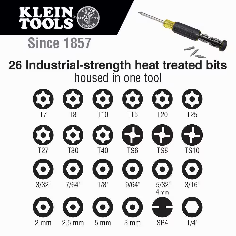 Store New Arrivals Add to Favorite View Feedback Contact Klein Tools 27-In-1 Multi-Bit Tamperproof Screwdriver, Torx, Torq, Hex, Spanner Description Drive Style Multi-Bit Electrical Tools Features Handheld Hand Tool Type Multibit Screwdriver Handle Material Comfort Grip Individual/Set Individual Maximum tip size Multiple Tip Sizes Number of Pieces 1 Ratcheting No Returnable 90-Day Tools Product Type Hand Tool Manufacturer Warranty Please refer to the attached warranty document in the Product Overview section above under Info & Guides Assembled Depth (in) 1.42 in Assembled Height (in) 8.49 in Assembled Width (in) 1.42 in Handle Length (in) 5 Minimum tip size Multiple Tip Sizes Shaft Length (in) 3.38 Onboard storage of 26 tamperproof screwdriver bits Carbon steel barrel with powerful magnets secures bits, fasteners Cushion-Grip handle offers great comfort and torque Klein Tools' Multi-bit Screwdrivers help make your job a little easier. The 27-in-1 Tamperproof Screwdriver offers 26 specialty bits conveniently stored right in the handle and an integrated 1/4 in. nut driver. Powerful Rare-Earth magnets in the barrel secure the bits and fasteners. This screwdriver features industrial-strength bits as well as Cushion-Grip handles for outstanding comfort and control. Multi-Bit screwdriver features convenient on-board storage of 26 different tamperproof bits and a 1/4 in. nut driver Barrel contains powerful Rare-Earth magnets for securing bits and fasteners Industrial-strength, double-sided bits that are conveniently housed in the handle eliminating the need for a bulky bit block Stainless steel barrel provides great impact and wear resistance Cushion-Grip handle for maximum comfort Includes the following tamper-proof bits: Torx, TORQ-SET, Hex, and Spanner TORQ-SET is a registered trademark of Phillips Screw Co; TORX is a registered trademark of Acument Intellectual Properties, LLC ABOUT US We offer the best prices around on high quality products. Our E-store includes tools, general home, garden items and more. SHIPPING We are always working hard to ensure your package arrives as soon as possible. Please understand that some factors like weather, high postal traffic, and the performance of shipping companies are outside of our control. We offer free shipping to the lower 48 states and ship within 4 business days of payment, usually sooner. We do not accept P.O. Boxes. Please provide a physical address. RETURNS We offer a 30-Day Return Policy on items which you are not completely satisfied with. You have the option for a full-refund or an exchange of the item. No returns are available on items shipped outside of the USA. PAYMENT We accept PayPal. CONTACT US This page content is yet to come Please ad us to your favorite seller and visit again later Thank You CUSTOMER SATISFACTION We try our very best to make sure every customer is completely satisfied. If there's a problem, message us! We're happy to help. WE ACCEPT Copyright © 2017 AutoDs. | All Rights Reserved