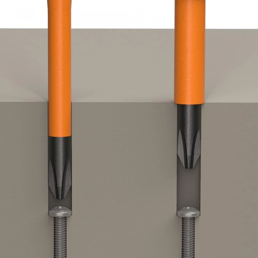 Klein Tools 32293 Insulated Screwdriver, 2-in-1 1/4-Inch, Black/Orange Product Details Brand: Klein Tools Number of Items: 1 Head Style: #2 Phillips and a 1/4-inch slotted Material: Alloy Steel, Plastic Color: Black/Orange Special Feature: Insulated, Interchangeable Blade Item dimensions L x W x H: 8.25 x 1.25 x 1.25 inches Item Weight: 4.1 Ounces Model Name: 32293 Head Size: #2 Phillips, 1/4-inch Slotted Manufacturer: Klein Tools Part Number: 32293 Item Weight: 4.1 ounces Product Dimensions: 8.25 x 1.25 x 1.25 inches Item model number: 32293 Is Discontinued By Manufacturer: No Size: 1/4-Inch Style: 2-in-1 Pattern: Screwdriver Item Package Quantity: 1 Special Features: Insulated, Interchangeable Blade Included Components: 2-in-1 Insulated Flip-Blade Screwdriver, #2 Ph, 1/4-Inch Sl Batteries Included?: No Batteries Required?: No Brand: Klein Tools Number of Items: 1 Head Style: #2 Phillips and a 1/4-inch slotted Material: Alloy Steel, Plastic Color: Black/Orange Insulated Screwdriver Flip-Blade has a #2 Phillips end and a 1/4-Inch Slotted end Securely and easily release the blade with a quick twist of the lock collar Interchangeable blades with a slim-tip to fit tight terminal blocks Handle and blade have a 1000-Volt insulation rating A layer of orange impact and flame resistant insulation protects from electric shock Meets or exceeds ASTM F1505 standards for insulation Cushion-Grip handles for greater torque and comfort Klein Tools' Flip-Blade Insulated Screwdriver is two drivers in one tool. The auto-eject mechanism works with just a twist, allowing you to flip the #2 Phillips- to the 1/4-Inch Slotted-end of the blade simply and easily. A bright orange coating of insulation protects from electrical shock, as well as being flame and impact resistant. Klein insulated tools exceed the ASTM F1505 standards for insulated tools, and are clearly marked with the official 1000-Volt rating symbol. For more than 160 years, Klein Tools has manufactured premium-quality, professional-grade hand tools that deliver the performance, durability and precision needed to get the job done right. Our family of engineers, workers and craftsman continue to put six generations of expertise into every tool we create by using only the highest quality materials, superior workmanship, and keeping manufacturing as close to home as we can. Klein isn't just the name of our company, it's also our family name. And since we're an American company that's family-owned and family-run, you know you can count on us to be here tomorrow. Klein Tools doesn't just make great products, we make great products that stand up to the demands of the professionals who use them every day ... Since 1857.