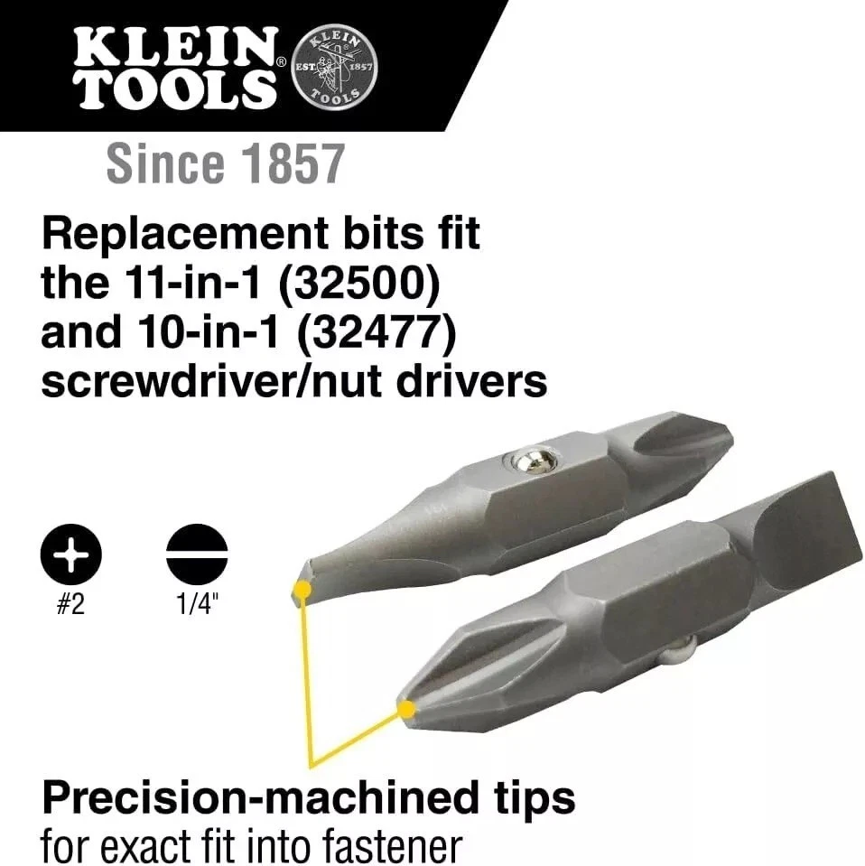 Fits the 11-in-1 (32500) and 10-in-1 (32477) Screwdriver/Nut Drivers Precision-machined tips for exact fit into fastener Contains 2 bits: #2 Phillips, 1/4-Inch Slotted
