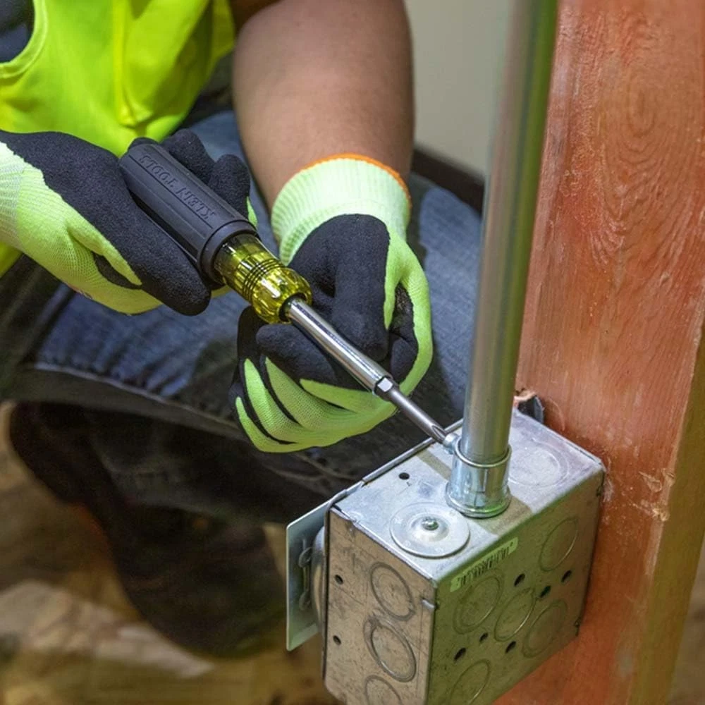 Klein Tools 32559 Multi-bit Screwdriver / Nut Driver, 1-Pack, Yellow/Black Product Details Brand: Klein Tools Number of Items: 1 Head Style: Extended Reach Multi-Bit Screwdriver Material: Tool Steel Color: Yellow/Black Recommended Uses For Product: Home Improvement, Furniture Assembly Special Feature: Ergonomic Item dimensions L x W x H: 2 x 2 x 9.1 inches Item Weight: 6.6 Ounces Model Name: 32559 Head Size: 5 inches Manufacturer: Klein Tools Part Number: 32559 Item Weight: 6.6 ounces Product Dimensions: 2 x 2 x 9.1 inches Country of Origin: Taiwan Item model number: 32559 Is Discontinued By Manufacturer: No Size: 1-Pack Style: Screwdriver Pattern: Screwdriver Item Package Quantity: 1 Special Features: Ergonomic Included Components: Extended Reach Multi-Bit Screwdriver Batteries Included?: No Batteries Required?: No Brand: Klein Tools Number of Items: 1 Head Style: Extended Reach Multi-Bit Screwdriver Material: Tool Steel Color: Yellow/Black Multi-bit screwdriver with interchangeable shaft holds 4 universal tips and converts to 2 nut driver sizes Extended shafts and blades provide 39-percent longer reach Extra-long shaft provides full reach of 4 standard-blade screwdriver Small diameter shaft for comfortable grip and quick, easy turning Contains: 3/16-Inch (5 mm) and 1/4-Inch (6 mm) slotted, #1 and #2 Phillips, 1/4-Inch (6 mm) and 5/16-Inch (8 mm) nut drivers Our extended-reach multi-bit screwdrivers and nut drivers provide longer reach than traditional Klein multi-bit drivers for multiple common bits. The extra-long shafts also feature a small diameter for a more comfortable fit in tight spaces. Cushion-Grip handles provide superior torque and comfort. For more than 160 years, Klein Tools has manufactured premium-quality, professional-grade hand tools that deliver the performance, durability and precision needed to get the job done right. Our family of engineers, workers and craftsman continue to put six generations of expertise into every tool we create by using only the highest quality materials, superior workmanship, and keeping manufacturing as close to home as we can. Klein isn't just the name of our company, it's also our family name. And since we're an American company that's family-owned and family-run, you know you can count on us to be here tomorrow. Klein Tools doesn't just make great products, we make great products that stand up to the demands of the professionals who use them every day ... Since 1857.
