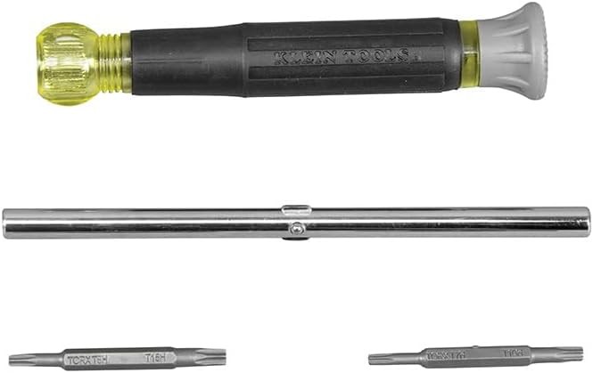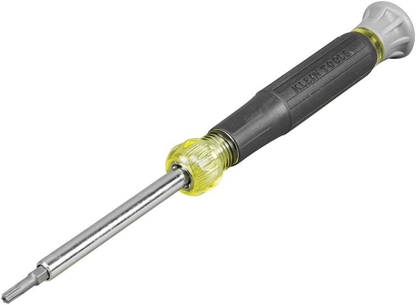 Klein Tools 32585 Multi-bit Precision Screwdriver Set, 4-in-1 Yellow/Black Product Details Brand: Klein Tools Number of Items: 1 Head Style: Square Torx Material: Alloy Steel, Rubber Color: Yellow/Black Recommended Uses For Product: Electronics Item Special Feature: Rotating Cap for Optimum and Precise Control Item dimensions L x W x H: 6.5 x 1 x 1 inches Item Weight: 1.1 Ounces Model Name: 32585 Manufacturer: Klein Tools Part Number: 32585 Item Weight: 1.1 ounces Product Dimensions: 6.5 x 1 x 1 inches Country of Origin: Taiwan Item model number: 32585 Is Discontinued By Manufacturer: No Style: 4-in-1 Screwdriver, Torx Item Package Quantity: 1 Measurement System: Metric Special Features: Rotating Cap for Optimum and Precise Control Included Components: Screwdriver Batteries Included?: No Batteries Required?: No Brand: Klein Tools Number of Items: 1 Head Style: Square Torx Material: Alloy Steel, Rubber Color: Yellow/Black VERSATILE ELECTRONICS SCREWDRIVER: Klein Tools 4-in-1 Electronics Screwdriver with multiple TORX tamperproof bits for precision work TAMPERPROOF TORX BITS: Includes T7, T8, T10, and T15 tamperproof TORX pin bits for a wide range of electronic applications PREMIUM SPIN CAP: Free-spinning cap allows your palm to rest in place for optimal control and precise fastening CHROME-PLATED BARREL: Provides a smooth finish and corrosion resistance for long-lasting utility CUSHION-GRIP HANDLE: Offers greater comfort and torque while working on small equipment PRECISION-MACHINED BITS: Heat-treated bits provides exact fit to reduce cam-out TORX is a registered trademark of Acument Intellectual Properties, LLC Klein Tools 4-in-1 Electronics Screwdriver, featuring four TORX tamperproof bits in one tool, is designed for precision work. The swivel cap provides optimum control. Made of the highest quality tempered steel, carefully heat-treated for maximum strength, and precision milled to fit screw openings securely. Cushion-Grip handles offer outstanding comfort and control. Corrosion-resistant chrome plated barrel that holds two double-ended bits. For more than 160 years, Klein Tools has manufactured premium-quality, professional-grade hand tools that deliver the performance, durability and precision needed to get the job done right. Our family of engineers, workers and craftsman continue to put six generations of expertise into every tool we create by using only the highest quality materials, superior workmanship, and keeping manufacturing as close to home as we can. Klein isn't just the name of our company, it's also our family name. And since we're an American company that's family-owned and family-run, you know you can count on us to be here tomorrow. Klein Tools doesn't just make great products, we make great products that stand up to the demands of the professionals who use them every day ... Since 1857.