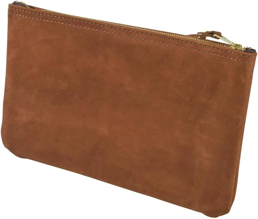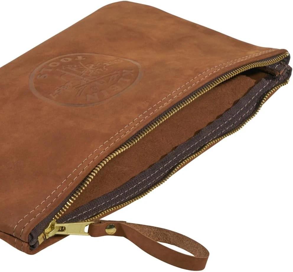 Klein Tools 5139L Top-Grain Leather Zipper Tool Pouch in Durable Brown