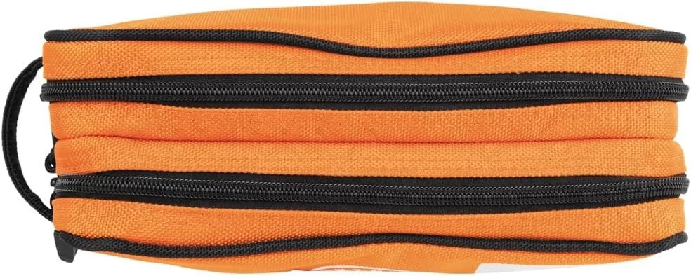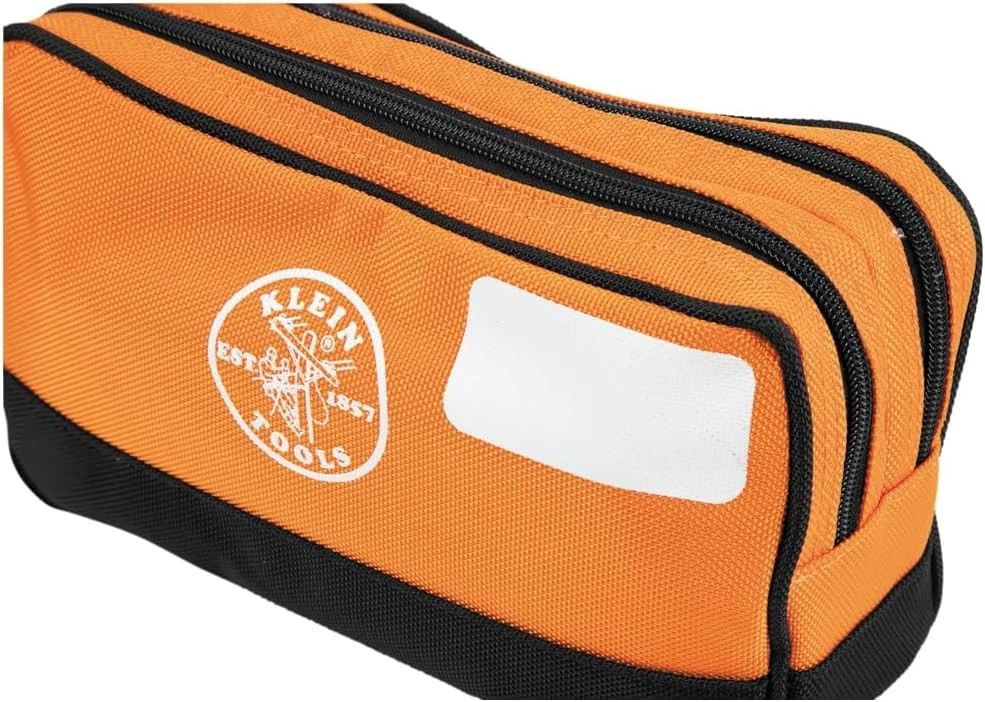 Klein Tools 55582 Tool Pouch Zipper Bag, Dual Compartments, 10-Inch x Orange Product Details Color: Orange Brand: Klein Tools Material: Polyester Product Dimensions: 10"L x 3"W x 6"H Item Weight: 0.71 Pounds Number Of Pockets: 2 Closure Type: Zipper Manufacturer: Klein Tools Number of Compartments: 2 Item Package Dimensions L x W x H: 15.59 x 7.8 x 3.15 inches Package Weight: 0.36 Kilograms Item Dimensions LxWxH: 10 x 3 x 6 inches Brand Name: Klein Tools Model Name: 55582 Suggested Users: unisex-adult Number of Items: 1 Part Number: 55582 Included Components: Double Zipper Bag, 10 x 6-Inch Color: Orange Brand: Klein Tools Material: Polyester Product Dimensions: 10"L x 3"W x 6"H Item Weight: 0.71 Pounds DUAL COMPARTMENTS: Zipper bag has two compartments to organize small tools, supplies, and parts, keeping items like meters and leads, sockets and wrenches, or earplugs and gloves separated MADE TO LAST: Tool pouch body is made with heavy-duty 1680d material with a 2520d reinforce 3-Inch gusseted bottom allowing it to stand up for easy access CONVENIENT SIZE: At 10-Inch (25 cm) long x 6-Inch (15 cm) high, the double-zipper bag bag can be easily loaded into toolboxes, tool bags, tool totes, and backpacks EASILY IDENTIFY CONTENTS: White space on front to write bag contents or name EASY TO CARRY HANDLE: Tool pouch is easy to grab for quick transport on any job site MULTIPURPOSE BAG: Designed with the durability for tools but can be used for anything that requires storage organization like crafting, hobbies, electronics and school supplies ON THE GO: Quickly grab and conveniently carry smaller items while keeping them organized when not wanting to carry a full bag or tote