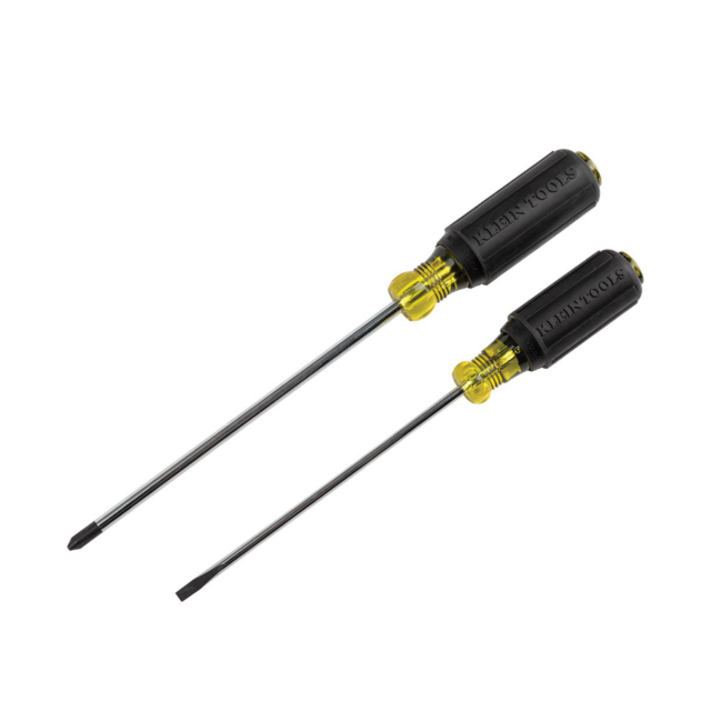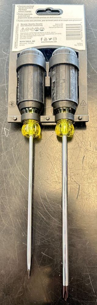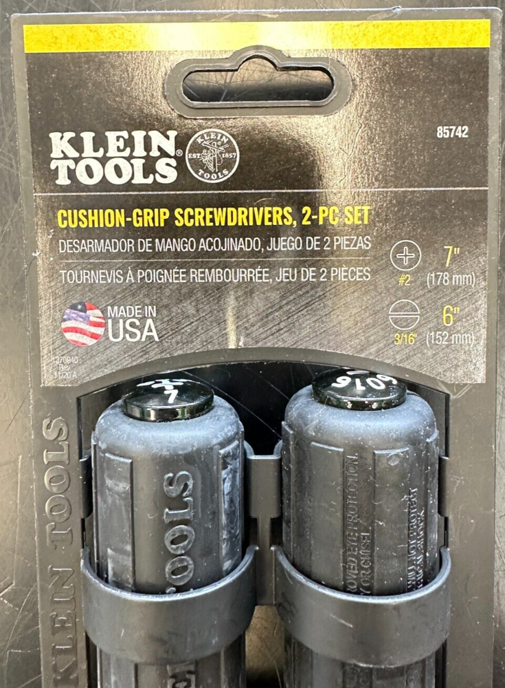 Klein Tools 85742 Screwdriver Set, Made in USA, 3/16 Cabinet and #2 Black Product Details Brand: Klein Tools Number of Items: 2 Head Style: 3/16-Inch Cabinet and #2 Phillips Tip Screwdrivers Material: Alloy Steel, Rubber Color: Black Recommended Uses For Product: Construction, Home Improvement, Auto Repair, Craftsman, Furniture Assembly, Electric Appliances Special Feature: Ergonomic Item dimensions L x W x H: 11.25 x 1.25 x 1.25 inches Item Weight: 3.2 ounces Model Name: 85742 Head Size: 3/16 inches Manufacturer: Klein Tools Part Number: 85742 Product Dimensions: 11.25 x 1.25 x 1.25 inches Item model number: 85742 Is Discontinued By Manufacturer: No Style: 3/16 Cabinet and #2 Phillips Item Package Quantity: 1 Number Of Pieces: 2 Special Features: Ergonomic Included Components: 3/16-Inch Cabinet and #2 Phillips Tip Screwdrivers Batteries Included?: No Batteries Required?: No Brand: Klein Tools Number of Items: 2 Head Style: 3/16-Inch Cabinet and #2 Phillips Tip Screwdrivers Material: Alloy Steel, Rubber Color: Black EXTENDED-REACH TIPS: Includes 7-Inch Phillips #2 and 6-Inch 3/16" cabinet screwdrivers for greater access to fasteners in hard-to-reach, narrow spaces PRECISION-MACHINED TIPS: Help reduce cam-out and provide exact fit EASY TYPE AND TIP IDENTIFICATION: Tip-Ident provides bold dome markings to quickly align screwdriver tip for greater efficiency and faster tool swapping CUSHION-GRIP HANDLES: Provide greater torque and comfort for consistent and continual driving MADE IN USA: Manufactured and assembled in USA for quality and performance CHROME-PLATED BLADES: Heat-treated and chrome-plated blades provide corrosion resistance and added durability throughout the life of the tool DOUBLE-FLANGE BLADES: Anchor inside handle to provide solid, twist-resistant connection for greater torque Klein Tools' Cushion-Grip Screwdrivers are designed for demanding applications on the job site. Durable Cushion-Grip handles are designed for comfort and added torque. Integral flanges inside handle provide solid, twist resistant blade anchor. The precision machined tips provide an exact fit. Special heat-treated shafts with premium chrome plating for smooth feel and corrosion resistance. Patented Tip-Ident quickly identifies the type of screwdriver and screwdriver tip orientation. Meets or exceeds applicable ASME / ANSI specifications. For more than 160 years, Klein Tools has manufactured premium-quality, professional-grade hand tools that deliver the performance, durability and precision needed to get the job done right. Our family of engineers, workers and craftsman continue to put six generations of expertise into every tool we create by using only the highest quality materials, superior workmanship, and keeping manufacturing as close to home as we can. Klein isn't just the name of our company, it's also our family name. And since we're an American company that's family-owned and family-run, you know you can count on us to be here tomorrow. Klein Tools doesn't just make great products, we make great products that stand up to the demands of the professionals who use them every day ... Since 1857.