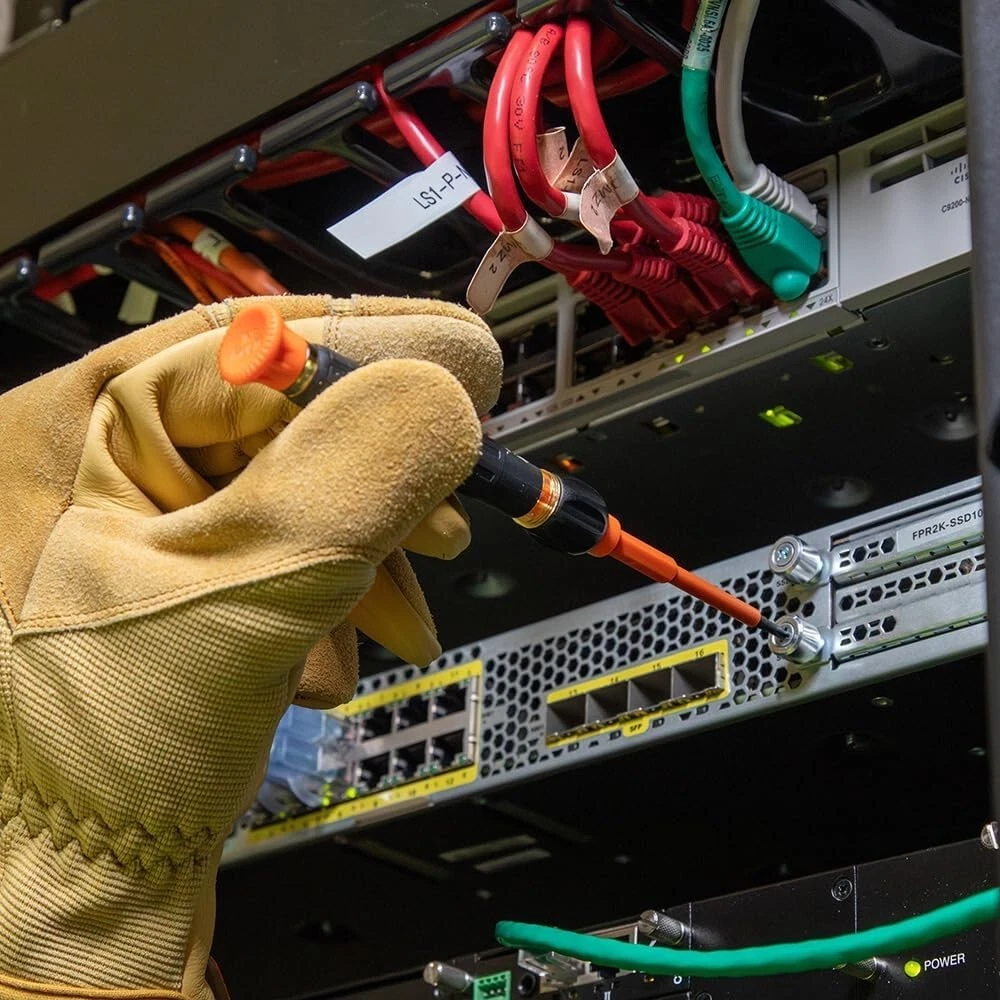 About this item 8-in-1 INSULATED SCREWDRIVER SET: Phillips #00 and #0; Slotted 3/32" and 1/8"; Tamperproof Torx T7H, T8H, T10H, T15H flip blades are included all within one case 1000V INSULATED RATING: Screwdriving handle and precision flip blades meet or exceed ASTM F1505-16(2021) FLAME-RESISTANT INSULATION: Precision flip blades are protected from energized sources and resistant to flames and sparks for added protection 4 INTERCHANGEABLE FLIP BLADES: Flip blades lock securely into handle and allows for quick and convenient bit swapping CUSHION-GRIP HANDLE: Precision handle offers greater comfort and torque PREMIUM SPIN CAP: Free-spinning cap allows your palm to rest in place for optimal control and precise fastening EXTENDED-REACH SLIM TIPS: Slim tips provide safe access into tight terminal blocks