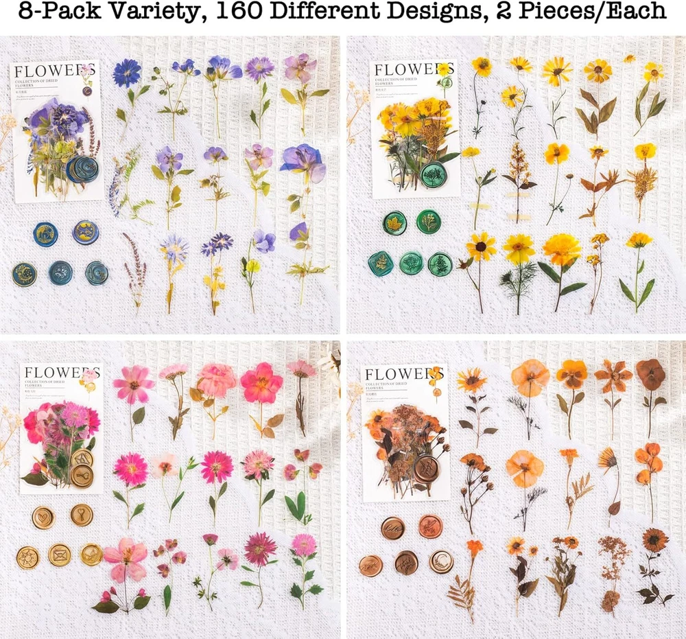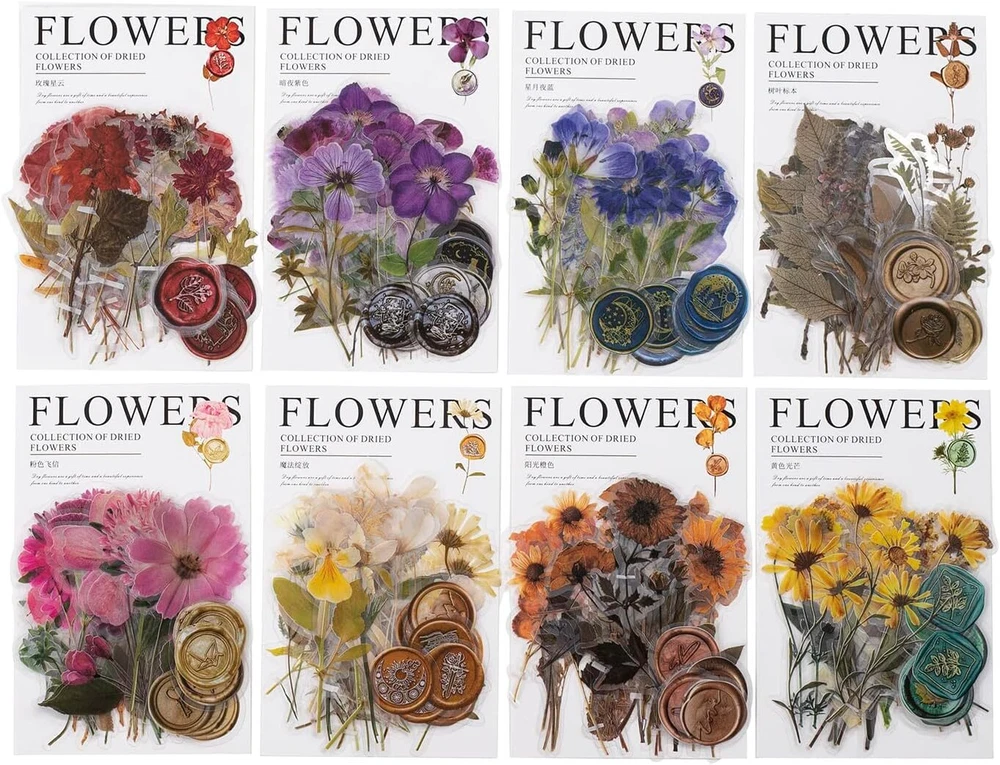 Knaid Pressed Flower Themed Stickers Set (320 Pieces) Dried Multicolored Product Details Brand: Knaid Color: Multicolored Item dimensions L x W x H: 5.5 x 3 x 1 inches Recommended Uses For Product: Laptop Theme: Floral,Flower,Flowers Cartoon Character: Flower Special Feature: Waterproof Number of Pieces: 320 Style: Flower Embellishment: transparent faux wax seals stickers, 1 inch in size Surface RecommendationMaterial: Paper, Window, GlassPolyethylene Terephthalate ShapeUnit Count: Irregular320.0 Count SMALL PRESSED FLOWER THEMED STICKERS - Each package comes with 8 pack, 320 pieces of assorted small size pressed flower themed stickers and transparent faux wax seals stickers in various shapes and colors. These cute floral stickers will surely be a great accent in your projects. Please be aware that these stickers feature pressed flower designs and are not made with real pressed flowers. HIGH-QUALITY CLEAR PLASTIC STICKER - Printed on high-quality clear plastic material (PET) with matte finishing and transparent border, these botanical adhesive decals are sticky and will hold well on anything with a smooth and dry surface like paper, furniture, laptops, phone cases, windows and water bottles. They’re waterproof, not easy to fade or break. MULTI-USE - This set of clear vinyl flower stickers is perfect for art journal, collages, mixed media art, decoupage, scrapbooking, decorating planners, diary and bullet journals, handmade cards, vision boards, notebook covers, altered art, gift wrapping & gift tags, party favor decoration, photo albums, school projects and much more. These plant stickers are perfect for all of your floral craft needs. SIZE & QUANTITY - You will get 320 pieces stickers (160 different designs, 2 pieces/each). Size of the floral pressed themed stickers are approximately 2.6 to 2.8 inch tall, and size of the transparent faux wax seals stickers is 1 inch. GORGEOUS GIFT - This pressed wildflower themed sticker pack is the perfect addition to your personal belongings and also makes thoughtful gifts for journal lovers, craft friends, students, anniversaries, birthdays and holidays, etc.