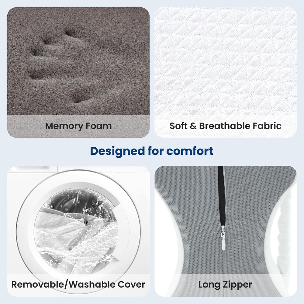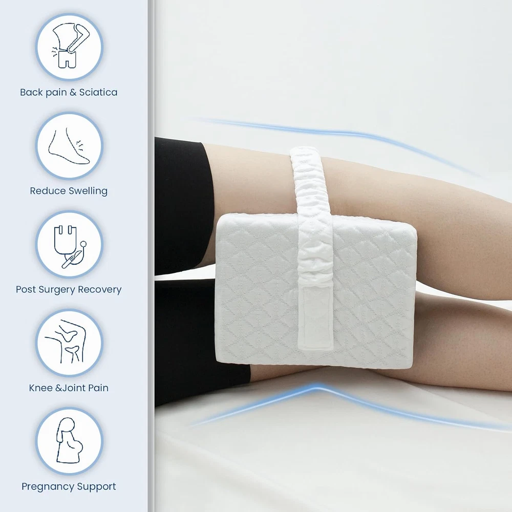 【CERTIPUR-US】Knee pillow for side sleepers is made up of CertiPUR-US certified memory foam,simple and powerful demonstration of the safety of products and effective defense of consumer interests. 【COOLING & BREATHABLE】White part of the cooling knee pillow cover in contact with the head is made of 100% PE microfiber cooling material,which provides incredible and long-lasting coolness,and the gray part of the side is made of breathable fiber material,which avoids sweltering during sleep and provides a better quality of sleep. 【ERGONOMIC DESIGN】Leg pillow size is 10'' X 8' X 6''in, ergonomic leg pillow for side sleeping is based on extensive research in ergonomic to design the perfect size knee pillow for most body types.The knee pillow conforms perfectly to your body,aligning your cervical spine and vertebrae.This ergonomically designed knee pillow supports your legs at the proper spacing to keep your legs,hips and spine properly aligned during sleep,which improves blood circulation,improves poor sleeping posture,relieves back pain,sciatica,and swollen feet,and provides strong protection and support during pregnancy,post-surgery recovery,injury recovery,and daily work reading. 【ADJUSTABLE & REMOVABLE STRAPS】Knee pillow for side sleeper is designed with adjustable and removable straps.The straps are bonded on both sides with high quality velcro and can be removed at any time if you don't need the straps.If you feel that the straps are fixed too tight or too loose,you can make adjustments through both sides.In addition,our straps themselves have good elasticity,which can make you better fixed during use.Allows you to sleep without having to repeatedly adjust your position and provides continuous support for your legs. 【UNIQUE DETAILS】Wedge pillow for back pain relief has a removable cover that is easy to remove and makes cleaning easier.In addition,our knee pillows feature hidden zippers,which prevent the zipper from accidentally piercing the skin during use,making them even safer. Product description SOFT SURFACE Soft and Silky Texture,breathable fiber material WASHABLE Easy to clean, the outer protective case is detachable and machine washable without damaging the surface DIAMOND PATTERN DESIGN The diamond pattern design is beautiful and comfortable REMOVEABLE COVER Zipper disassembly Easy to change and clean. Hidden zipper design , non-sensitive , safer and more comfortable