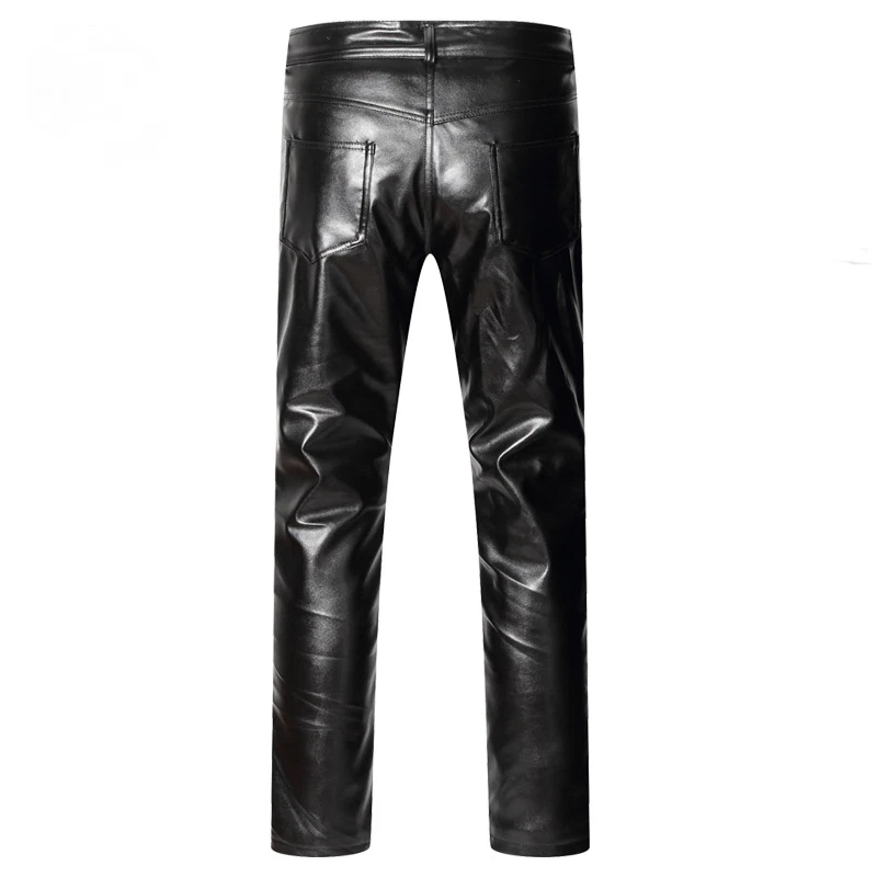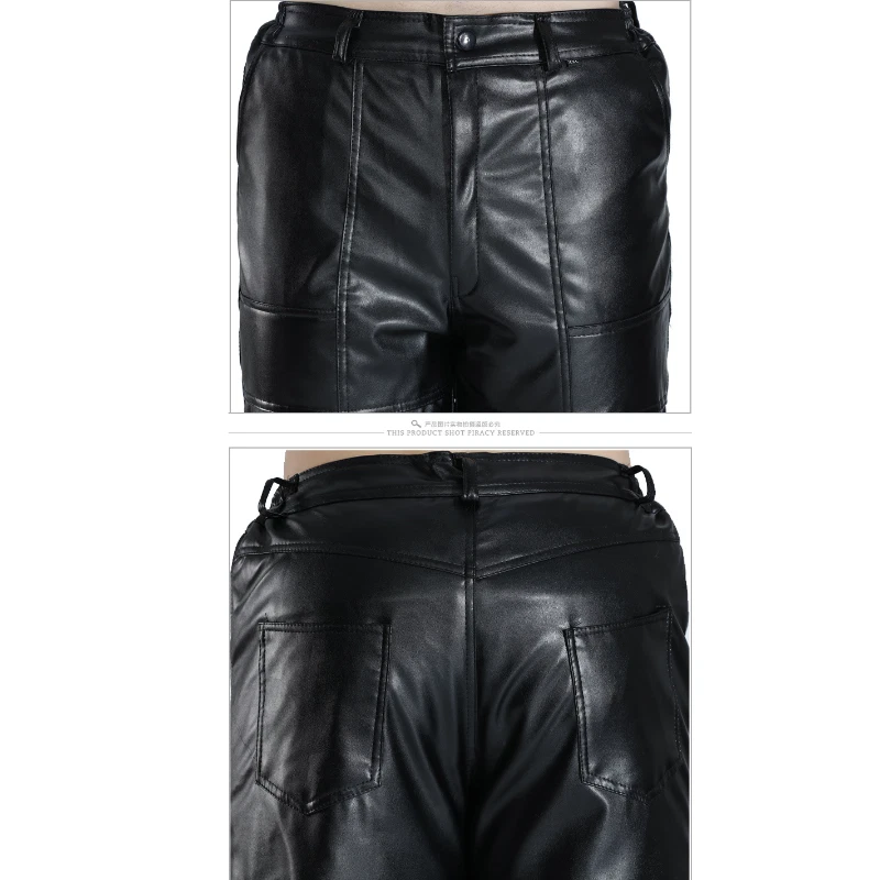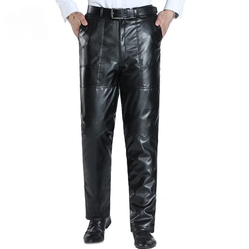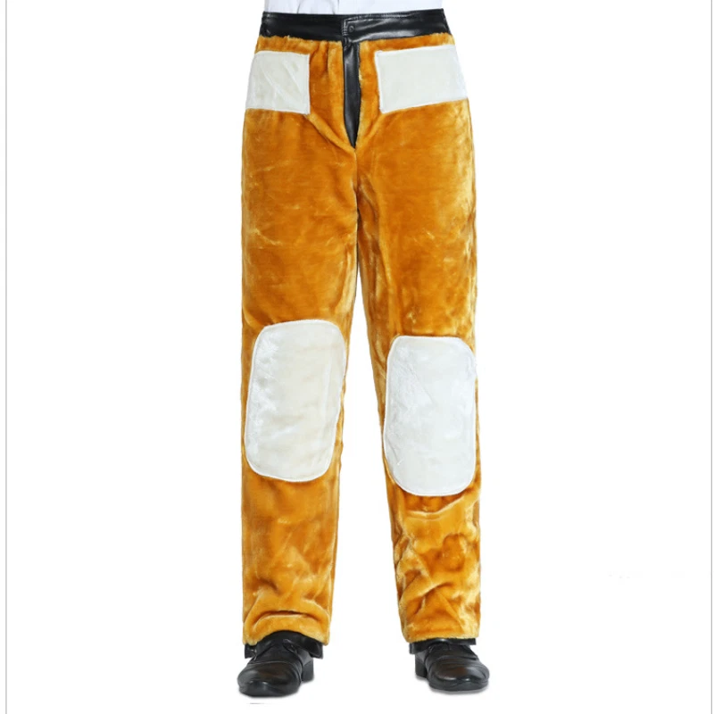 Knee/Waist Double Thick Leather Pants Men's Pu Motor Pants Fleeced Thermal Pants