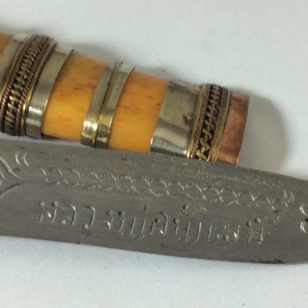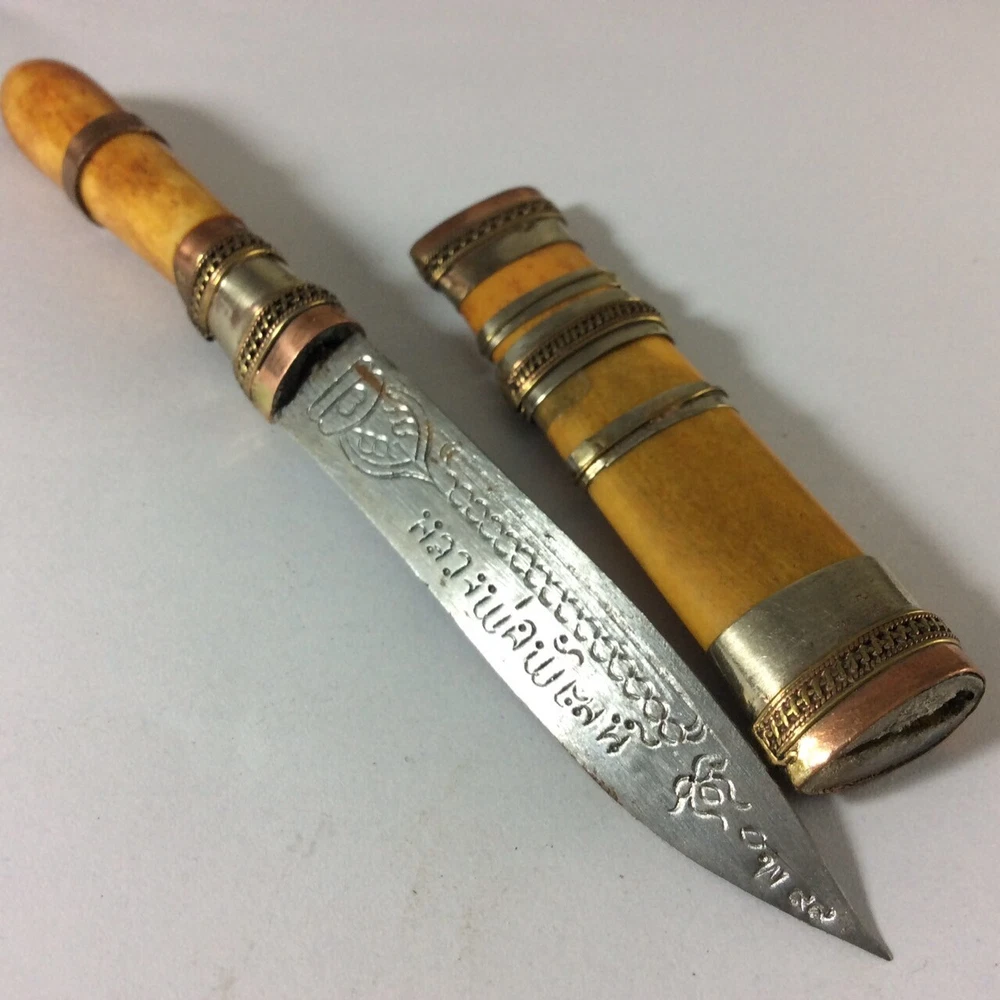 MAGICAL KNIFE Meed Mor LP PAT The Meed Mor is a ritual knife magically empowered, and often alchemically forged, and sheathed using sacred substances such as sacred treewoods, and other substances. Meed Mor knives are used for Ritual Magick, Carrying for Protection and Good Fortunes, and for Altar Worship for Bucha, to pray to for Blessings. But the Meed Mor, is also a kind of Magic Wand, Sceptre of Command over Spirits and Ghosts, and a hence, a Ritual Weapon much like the Athame in Wicca, to Banish Evil Spirits and Nullify Curses. Amulet Name : Magical Knife (Meed Mor) Created & Blessing By : Luang Por PAT Temple : Wat Huai Duan, Nakon Sawan Province Size Length : 12 cms Material : Iron mixed materials Origin : Thailand, South East Asia SUPER POWER MAGIC AMULET POWERFUL YANTRA Note: Photo samples from many pieces in stock Actual product may differ slightly FREE!! Shipping registered mail WORLDWIDE with tracking number. If you have questions, feel free to write me on e B a y message. THANK YOU FOR SHOPPING