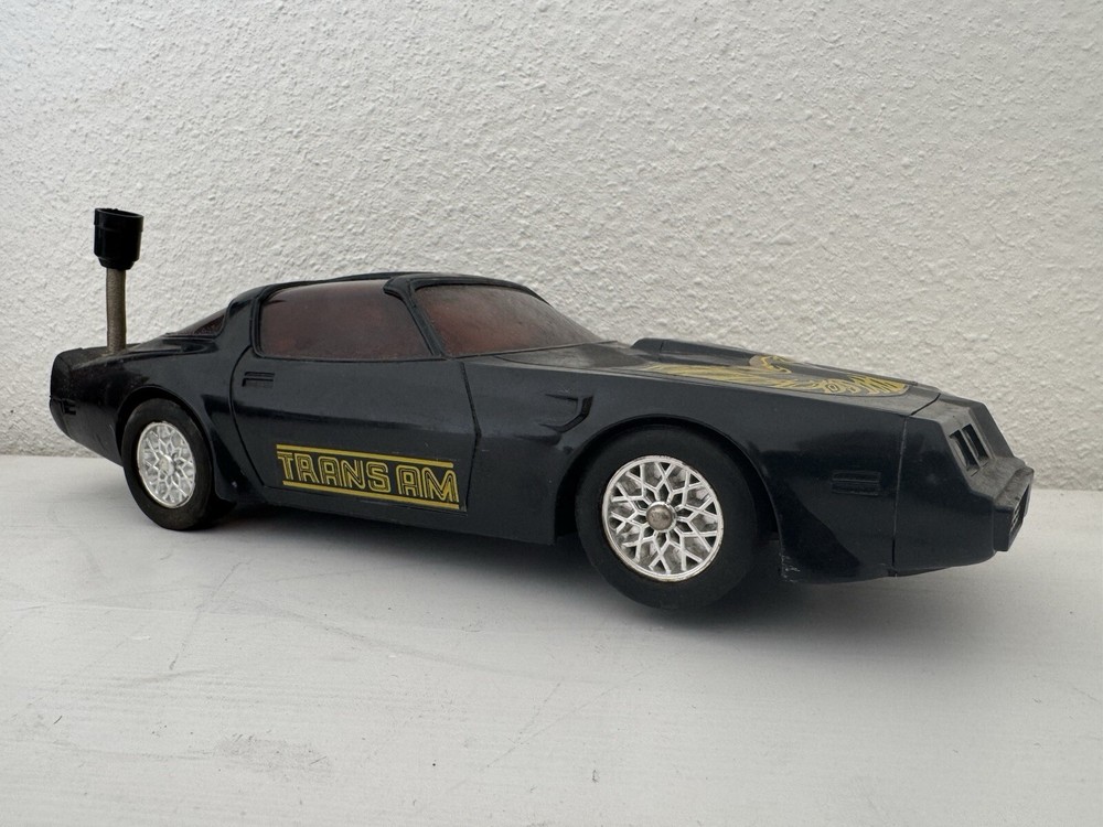 This vintage toy car is a must-have for any collector or fan of the Knight Rider series. The black Pontiac Trans Am toy car is battery-operated and features a sleek design, perfect for display or play. The car comes in its original condition, with no customizations or autographs. The vehicle make is Pontiac, and the vehicle type is a car. The model is Pontiac Trans, and the theme is Knight Rider. The vehicle year is 1982, and the recommended age range is 1-99. The gender is boys & girls, and the year of manufacture is 1982. The character family is cars, and the toy vehicle is a contemporary manufacture.