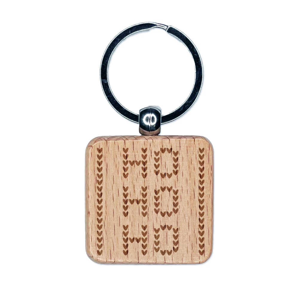 Knit Ho Ho Ho Christmas Engraved Wood Square Keychain Tag Charm