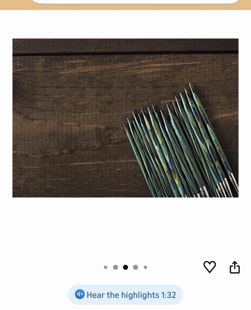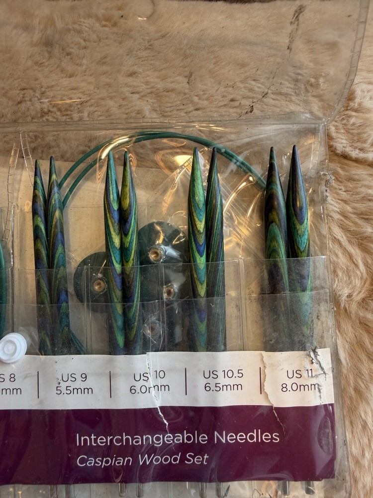 There is damage to multiple needles, some are broken, some of the round accessories are also damaged. BUT! There are several that are perfect, Hate for them not be used, they are beautiful. Price reflects - please ask if you have questions The Knit Picks Options Wood Interchangeable Knitting Needle Set includes a range of sizes from US 4 to US 11, providing versatility for various knitting projects. Made from durable wood, these needles offer a smooth and comfortable feel while knitting. The interchangeable design allows for easy switching between sizes, making them a convenient and high-quality tool for any knitting enthusiast.