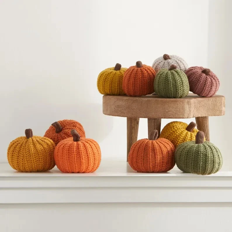 Highlights Made by Your Hearts Content Materials: acrylic dyed to match yarn About this item QUALITY KNIT: Our exclusive knits are handpicked in trending and curated colors. PERFECT FOR COORDINATING: Classic fall colors to complement any home decor. IDEAS FOR YOU: Mantel decor, bookshelf accent, gift for new apartment, office decor. PRODUCT DETAILS: 6' garland, 7 pumpkins strung on knit cord. Each knit pumpkin is 3 inch diameter x 2.5 inch tall, including the stem. WE LOVE SENDING THESE DIRECTLY TO YOUR LOVED ONES AS A GIFT!
