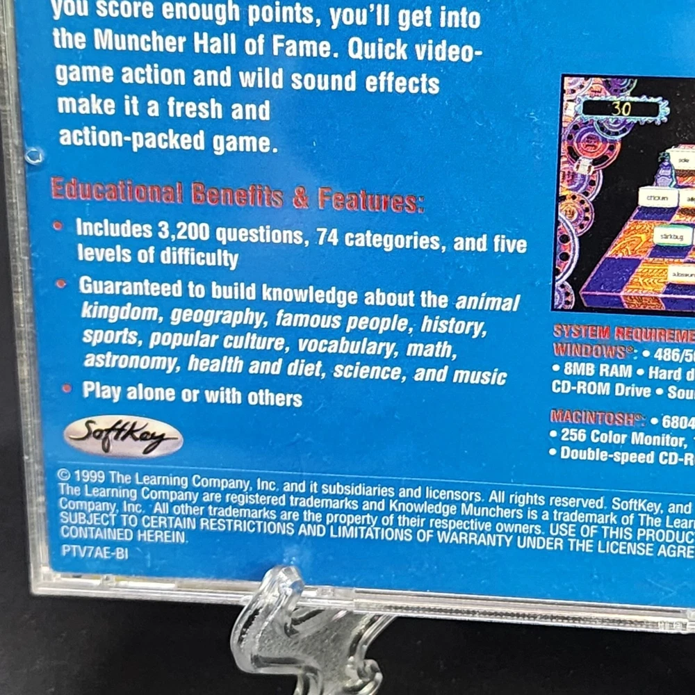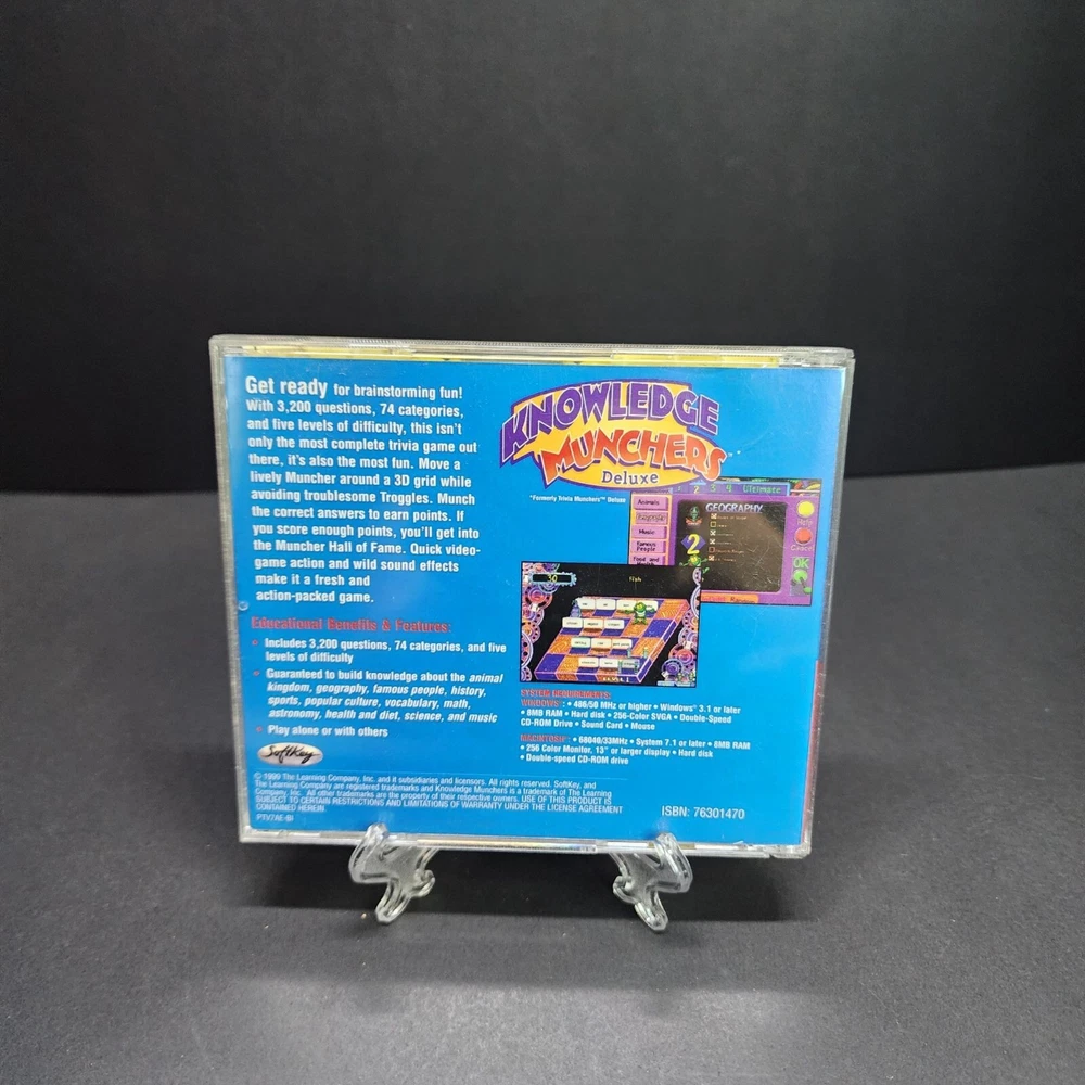 Knowledge Munchers Deluxe is an engaging PC game that tests players on various subjects. The trivia game is packed with fun learning activities housed on a CD ROM. • Interactive trivia game • Covers multiple subjects • Ideal for all age groups • CD ROM format • Fun and educational Features: • Vintage Learning Condition: Pre-Owned Good This computer disc is in good used condition. This is a vintage game so there are signs of scratches and wear. Please see pictures for more details. Thank you so much!