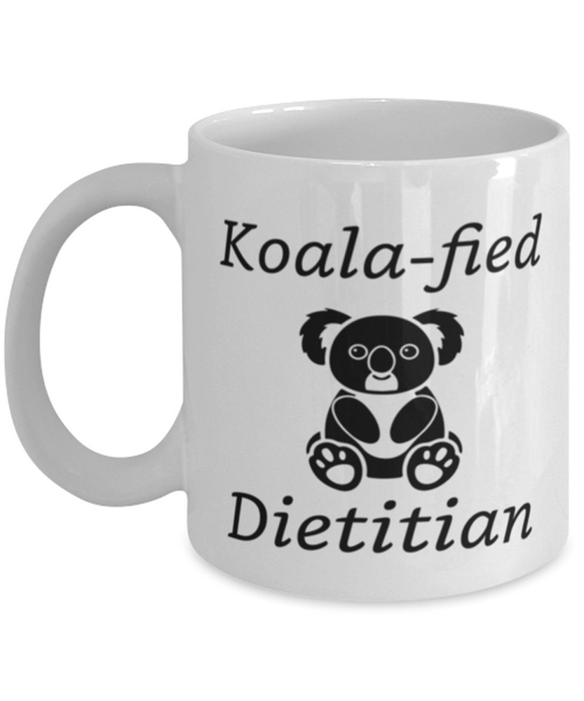 Dietician Funny Coffee Mug Koalafied Dietitian White Coffee Mug Product Details.. This high quality 11oz. ceramic white mug has a premium hard coat that provides crisp and vibrant color reproduction sure to last for years. Perfect for all hot & cold beverages. The highest quality printing possible is used. It will never fade no matter how many times you wash it. Material: 100% Ceramic. Print both sides. Dishwasher and Microwave Safe. High Gloss + Premium White Finish. Printed in the U.S.A. Personalized & Custom. We support personalized and custom mug to add custom, when placing an order, you can add notes to the "order note" in shipping address section. Also you can contact us directly via message. Shipping Info. Ready to ship in 1 to 2 business days, All products are made-to-order and proudly printed in the United States. Shipped by USPS and DHL, You will receive your order in 5-7 days. Replace & Refund. All products are defective during shipping broken, chipped will be replaced free of charge. You are not satisfied with the product, we will refund 100% money to you. If any other issues arise, please do not hesitate to message, we would be more than happy to assist you.