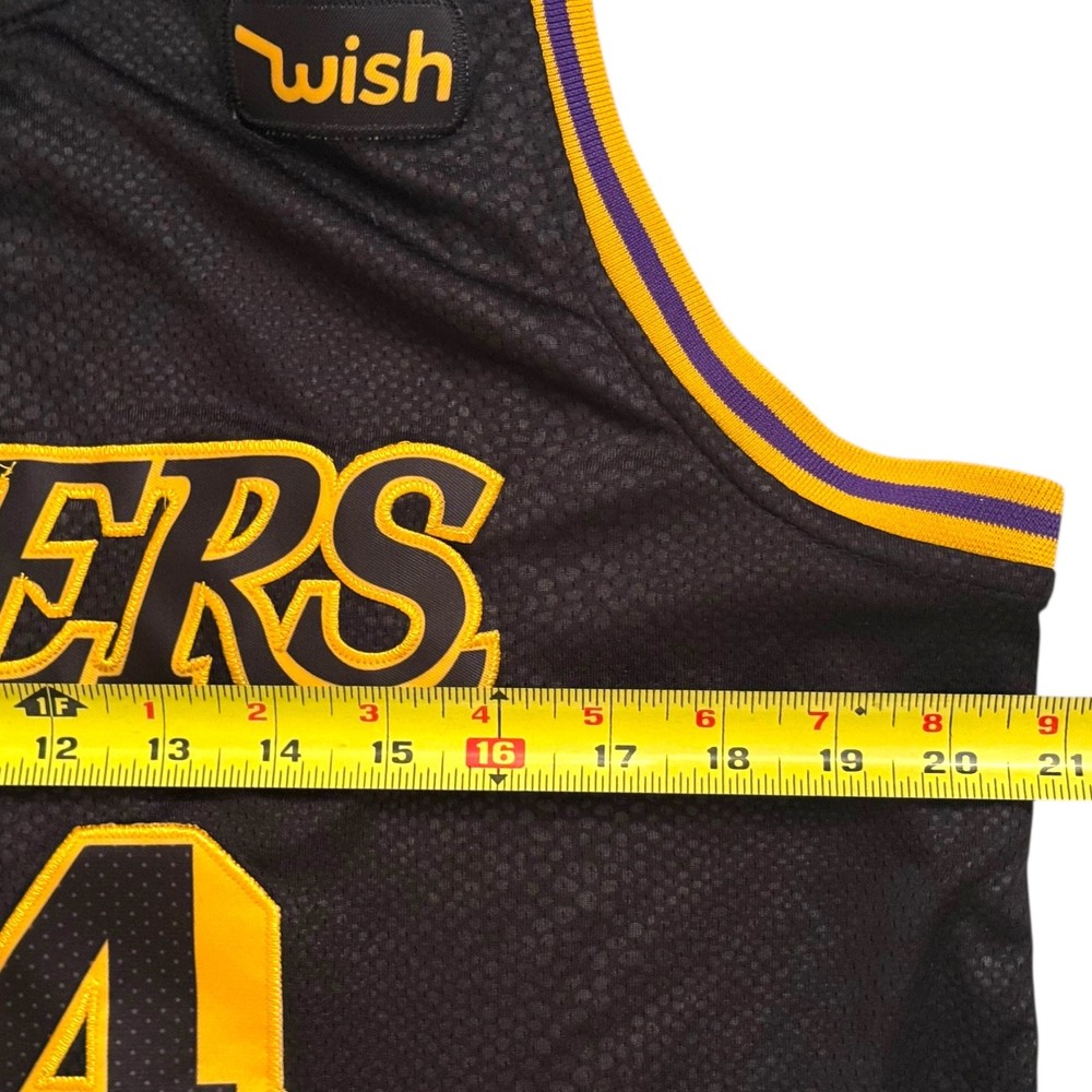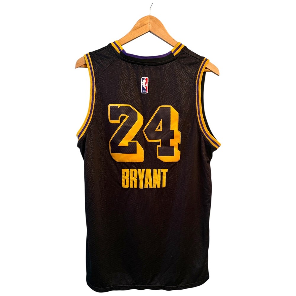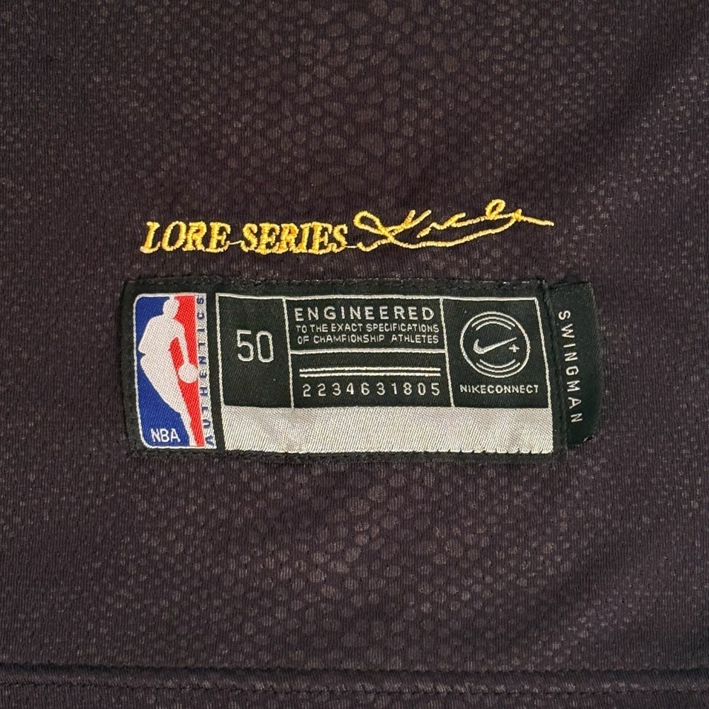 The product is a rare Nike Kobe Bryant #24 Lore Series jersey, featuring the iconic player's name and number. This officially licensed jersey from the Los Angeles Lakers is designed for men in size 50, with measurements provided in the photos. The jersey is black in color with a faint snake print, representing the NBA team and sport of basketball. Perfect for fans of Kobe Bryant and the Los Angeles Lakers, this jersey is a unique and sought-after collector's item for basketball enthusiasts. The heart with 2 represents his daughter GiGi Bryant. RIP