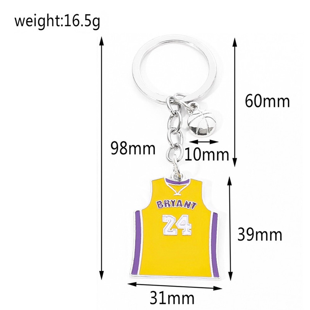This listing is for 2PC of NBA Basketball Superstar Kobe Bryant Jersey #24 Memorial Keychains Color: Purple, Yellow (There may be slight variation in the Actual Product Color because of the photoshoot lighting effect. Thank you for your understanding) Material: Metal