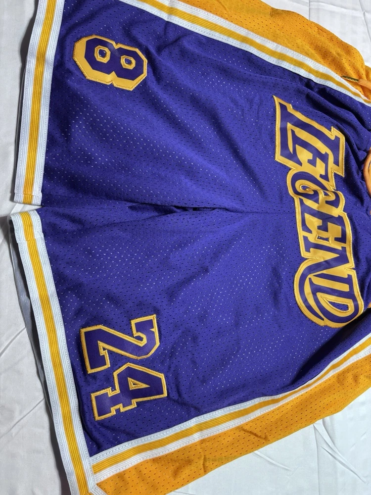 Kobe Bryant L.A Lakers Embroidered Basketball Shorts Sz Medium Legend #’s 8 & 24. New shipped with USPS ground advantage.