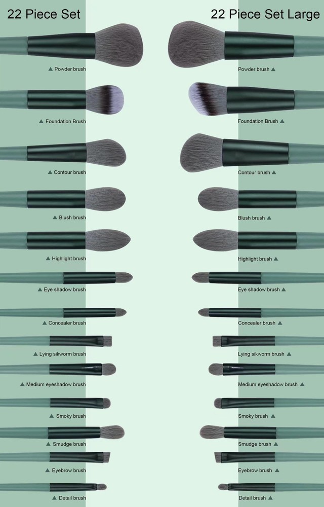 Koccido Makeup Brushes 22 Pcs Makeup Kit,Foundation Brush Eyeshadow Brush Make up Brushes Set (Green, 22 Piece Set) Product Details Size: 22 Piece Set Color: Green Brand: Koccido MPN: Koccido-01 UPC: 765045154643 EAN: 0765045154643 Bristle Material: Polyester Brand: Koccido Recommended Uses For Product: Face Makeup Color: Green Material: Polyester, Aluminum, Resin Skin Type: Combination Item Form: Wand Number of Pieces: 22 Age Range (Description): Adult Handle Material: Resin Package Dimensions : 8.31 x 4.49 x 2.6 inches; 9.91 ounces Item model number : Koccido-01 UPC : Manufacturer : Koccido Koccido Makeup Brushes Set : We've designed a comprehensive makeup combination kit that caters to diverse beauty requirements, enhancing the convenience of your makeup routine. Every beauty aficionado deserves to own a kit like this! Comprehensive Makeup Brush Set : This set includes 13 makeup brushes and a storage bag. In addition, we also prepare a silicone face-pack brush, a sponge egg set, and two silicone lip brush, a brush cleaning egg, and a silicone facial cleansing brush. This set is a good choice for beauty lovers. Soft and Comfortable Bristles : The bristles of our makeup brush set are made of high-quality fiber. The bristles are rich, soft and fluffy, and will not fall off easily. They can better grasp the powder and spread evenly on the face, which not only makes your makeup more natural, but also gentle and non-irritating to the skin. Rugged Handle : The makeup brush set is made of sturdy materials, which will not break easily when used in daily life. The handle is designed to fit the palm of the hand and is ergonomically designed, and it will not fall easily when using it. Multifunctional use : Each product in our makeup brush set is very practical. It can not only meet your makeup needs for eyes, cheeks, and lips, but also apply to a variety of cosmetics, including foundation, BB cream, powder, concealer, isolation liquid, and can be used for a long time. We have made combination Kit to meet various makeup needs.Make your makeup more convenient,Every beauty lovers should have a makeup kit such like this!!! Note:During long-distance transportation, small portion packaging box may have some defects, which is an unavoidable and common occurrence.In order to protect the products inside the box from getting lost during the logistics.We taped shut the packaging box with scotch tape.