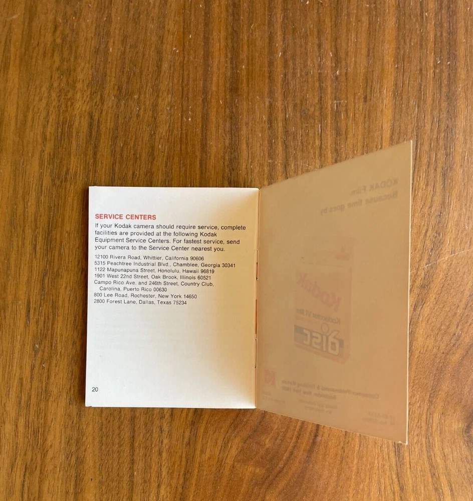 Here we have a Vintage Kodak Disc 3100 Camera Manual. It is 20 pages. The manual is approx. 3 1/2" tall x approx 3" wide. It is in good condition. It does have some wear and imperfections. See the photos for more info.