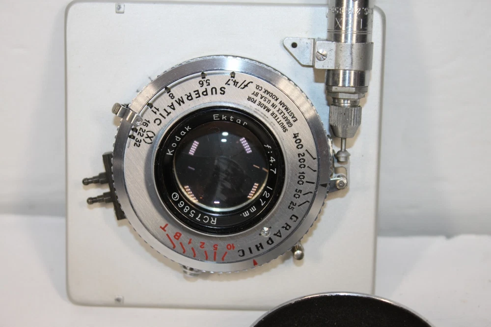 S/N RC7586 This is from a 1950's 4x5 Speed Graphic camera. Board is 3.75" X 3.75" Please take a moment to review the photos to get an understanding of the qualit y of this item. If you need more detail please email me through EBAY.