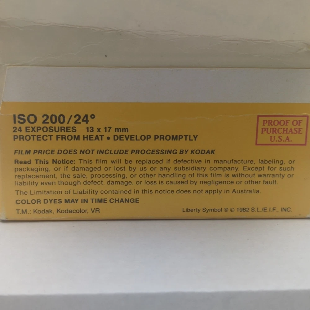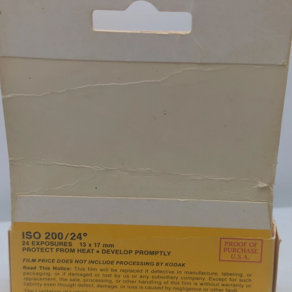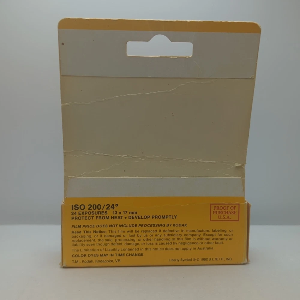 Capture your memories with this vintage Kodak Kodacolor 110 VR Film. This 24 exposure, ISO 200/24 color print film is perfect for any camera that fits 110 model film. Manufactured in the United States, this film has expired in May 1988, giving your photos a unique vintage quality. Great for any photography enthusiast or collector, don't miss your chance to own a piece of history. This is a new old stock film. The film condition is expired in the original unopened packaging. The box packaging is very worn. Please look at all photos for the packaging condition. You will see significant edge and surface wear in the form of creases, bending, dents, fraying discoloration, scratches, scuffs, and staining.