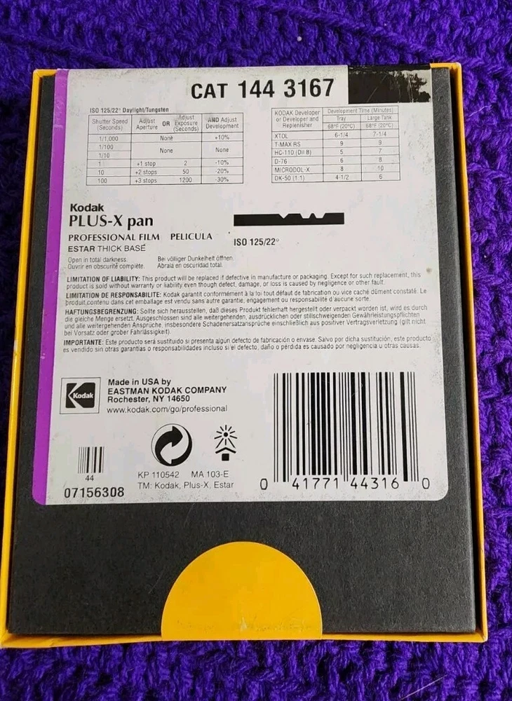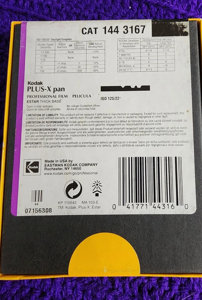 Capture life's timeless moments with the Kodak Plus X Pan Film, a classic choice for photographers who appreciate the fine art of black and white imaging. This expired film, dating back to February 2002, offers a vintage touch to your photography collection, consisting of 25 sheets with a 4 x 5 inch format, perfect for a variety of shooting scenarios. The film, a part of the renowned Plus series, ensures a high level of clarity and contrast, bringing a classic touch to your visual storytelling. With a total of 24 exposures, this single unit film allows for ample creativity within the constraints of its timeless aesthetic, a nod to the rich heritage of Kodak film technology.