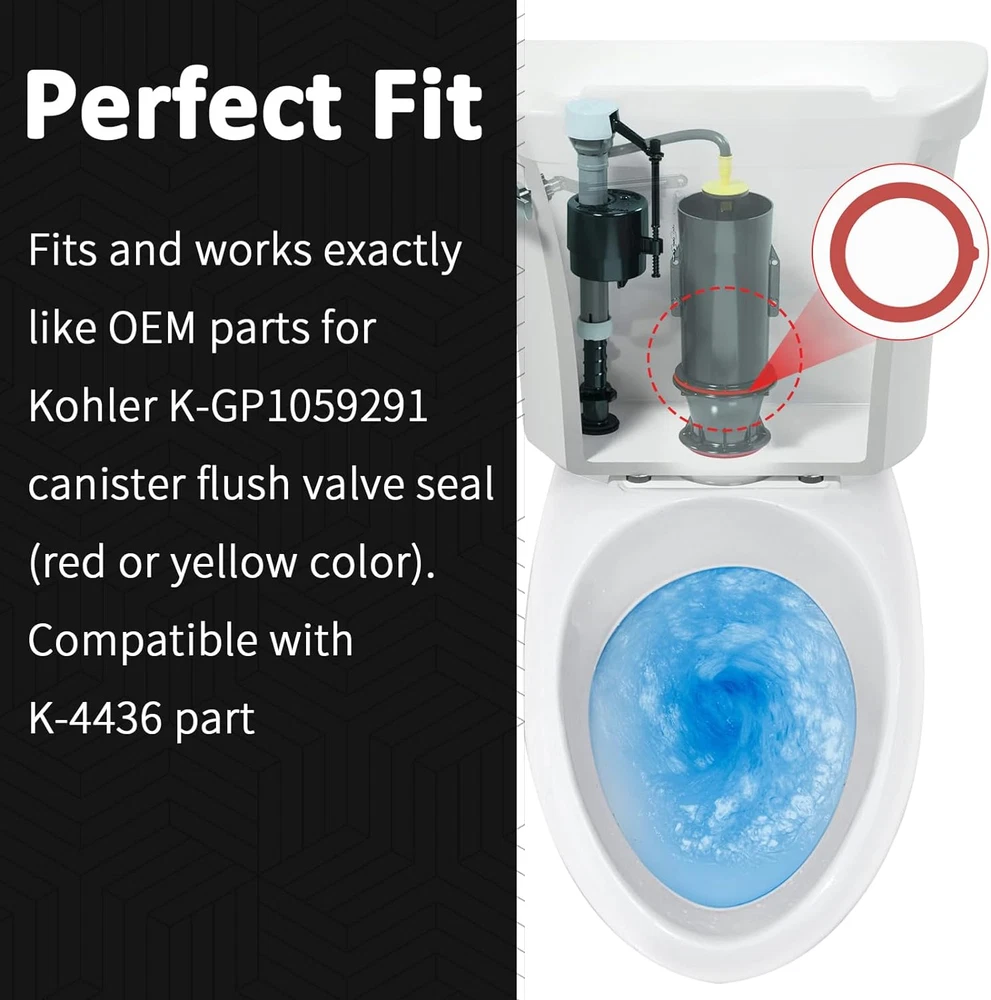 [Solving Your Kohler Toilet Flush Valve Leak] This canister flush valve seal can prevent or stop leaks, to restore your toilet's quiet operation, improve flush pressure, and avoid those high monthly water bills with our Kohler toilet parts. [Quick and Easy Installation] Quick and effortless to repair your Kohler toilet leaking problems. No plumbing pro skills required and no need to remove the toilet base, it takes just a few minutes to install and restore your toilet's tranquility. [Premium Silicone Material] The toilet flush valve seal is crafted from high-quality silicone material, offering better resistance to chlorine and other chemicals in the water compared to regular rubber seals, last 10X longer than standard material. [Great Compatibility] Perfect replacement for Kohler K-GP1059291 canister flush valve seal (red or yellow color). Compatible with K-4436 parts. [Installation Video for Toilet Seal] If you're unsure how to replace this toilet seal component or there are any problems with this flush valve seal, contact us through Amazon for an installation video. We'll respond within 0.5 to 6 hours upon receiving your message. Product Description