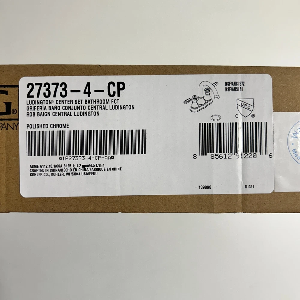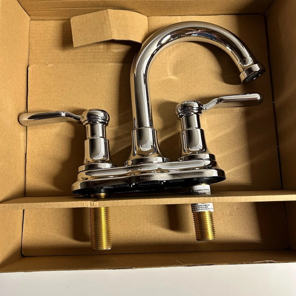 Kohler Sterling Ludington Centerset Bathroom Faucet, Chrome Finish, 27373-4-CP Condition: NEW Includes faucet fixture and drain pipe STERLING faucets are designed for quick installation and feature durable materials for reliable performance. Backed by our Sterling Faucets Lifetime Limited Warranty, you can install with confidence. The Ludington bathroom faucet collection combines traditional styling and vintage elements for an industrial look. Features Two Lever handles offer separate control of hot and cold water 360° spout rotation 5" (127 mm) spout reach 1.2 gpm (4.5 lpm) maximum flow rate at 60 psi (4.14 bar) KOHLER® ceramic disc valves exceed industry longevity standards for a lifetime of durable performance Clicker drain with tailpiece and overflow Coordinates with other products in the Ludington collection Material Premium metal construction for durability and reliability KOHLER finishes resist corrosion and tarnishing Installation For 4" (102 mm) centers Centerset Deck-mount Notice to California Customers WARNING: Cancer and Reproductive Harm – www.P65Warnings.ca.gov Will ship ASAP within 3 days after payment is confirmed. Should you have any issues or questions regarding any item, please contact us through Ebay messenger first so we can resolve the issue. We want you to be a satisfied customer. **We always appreciate your feedback once you receive your item. Thank you for your kind consideration.***