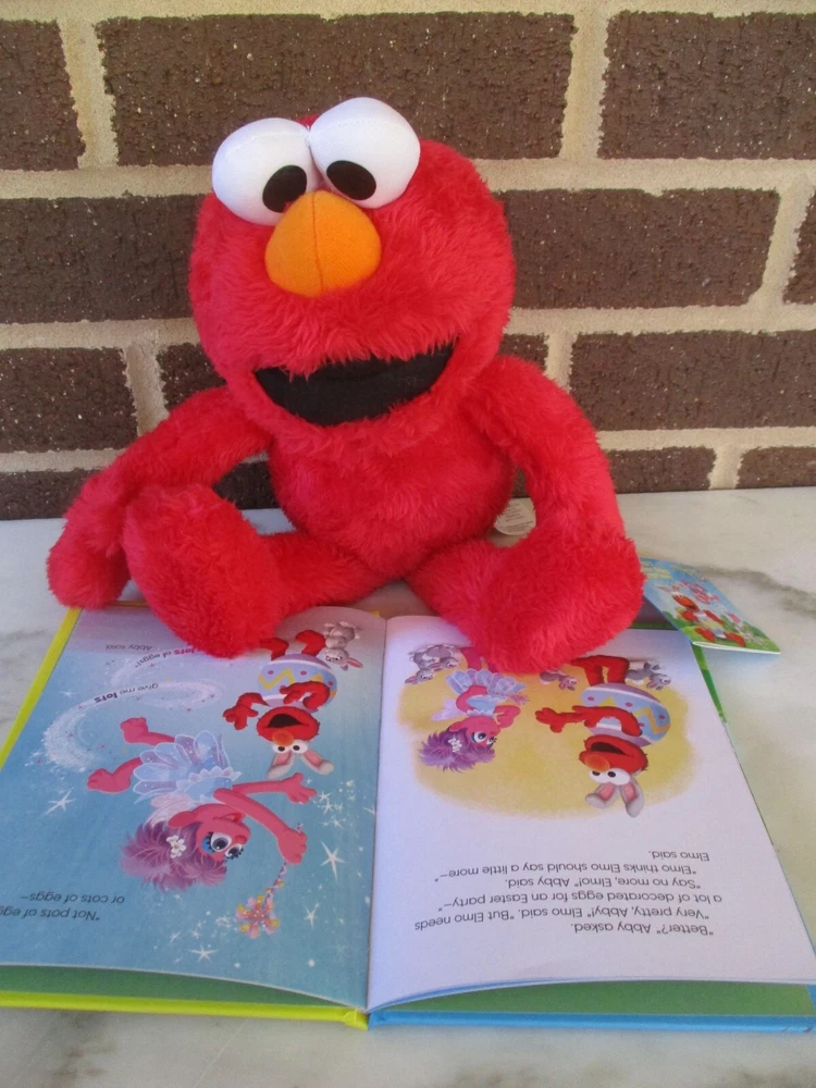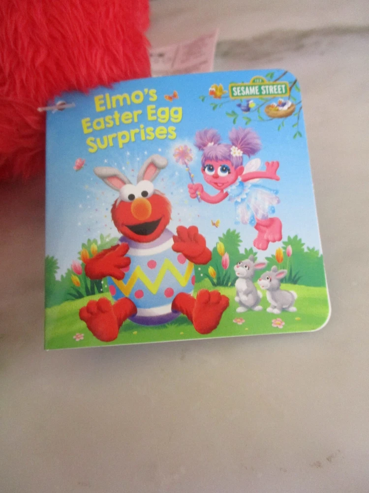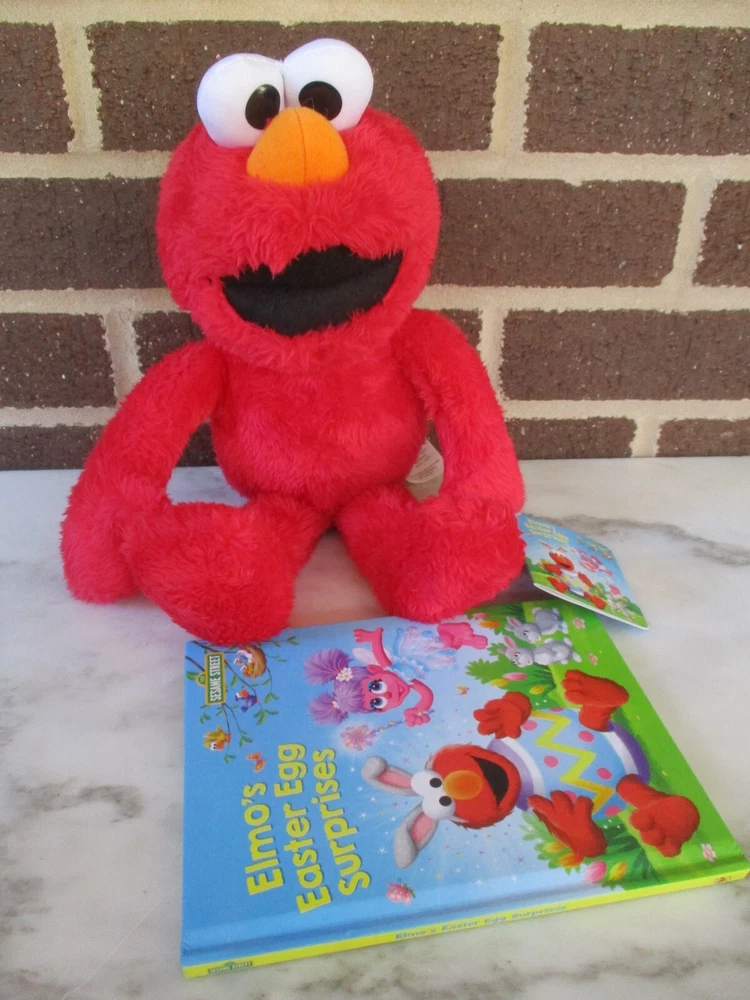 KOHL'S 2021 PLUSH STUFFED RED ELMO COMES WITH LITTLE 5" X 7" HARDBACK BOOK "ELMO'S EASTER EGG SURPRISES " PLUSH EYES AND ORANGE NOSE / FACIAL FEATURES NEW WITH TAGS VERY GOOD, CLEAN CONDITION NO SMOKING