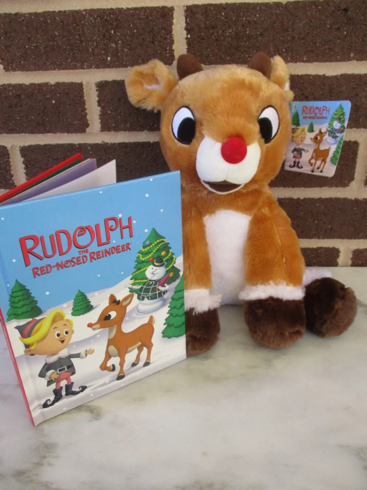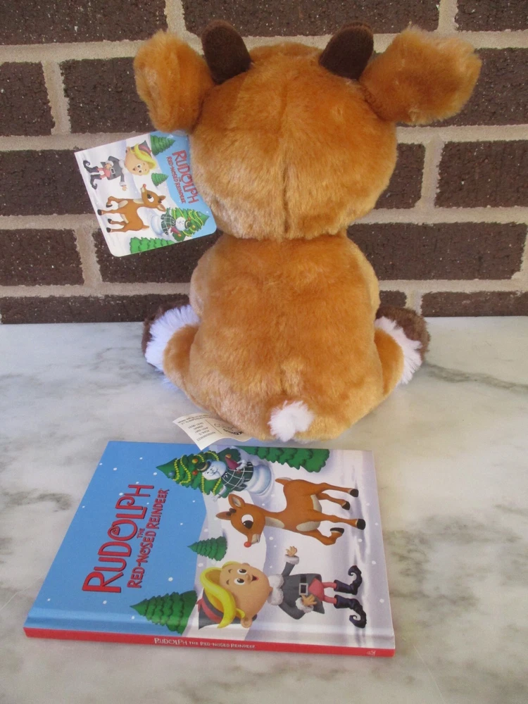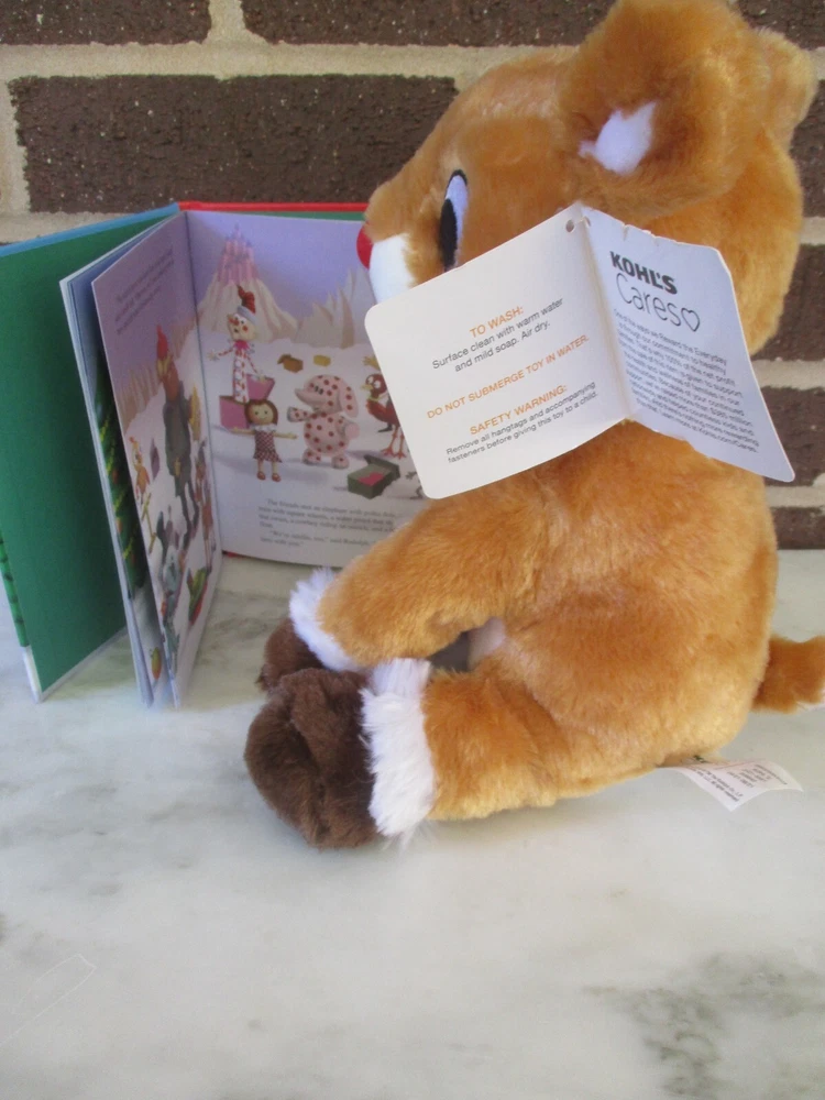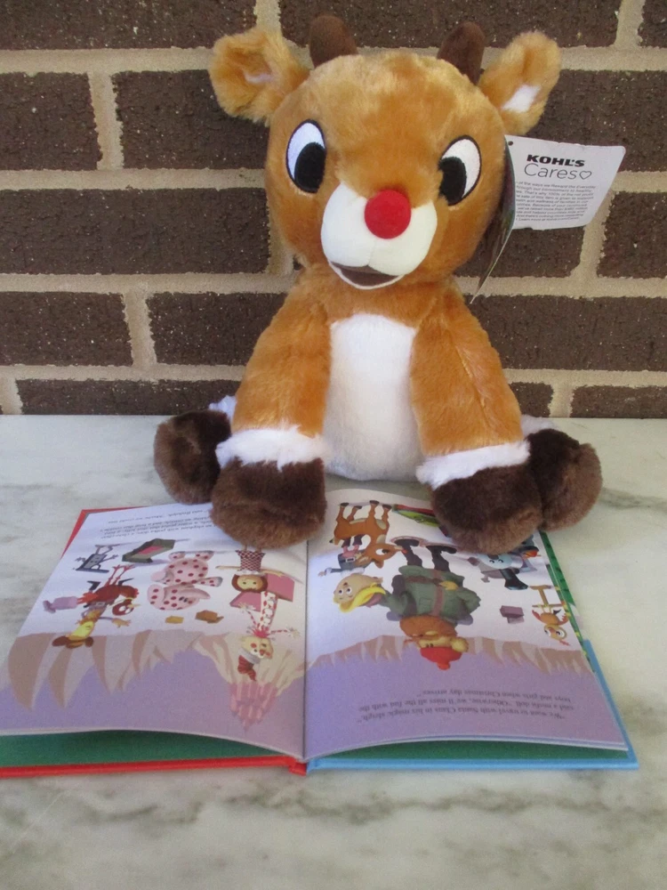 KOHL'S CARES 2021 PLUSH STUFFED RUDOLPH THE RED NOSED REINDEER SHADE OF BROWN WITH DARK BROWN HOOVES WHITE FUR LOOK END OF TAIL/TOP OF HOOVES CHEST HAIR RED VELOUR FEEL NOSE COMES WITH LITTLE 5" X 7" HARDBACK BOOK "RUDOLPH THE RED-NOSE REINDEER " EMBROIDERY SEWN FACIAL FEATURES NEW WITH TAGS VERY GOOD, CLEAN CONDITION NO SMOKING