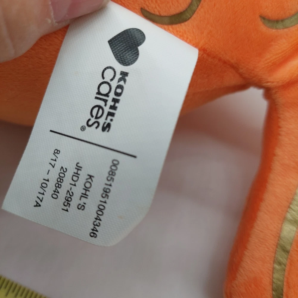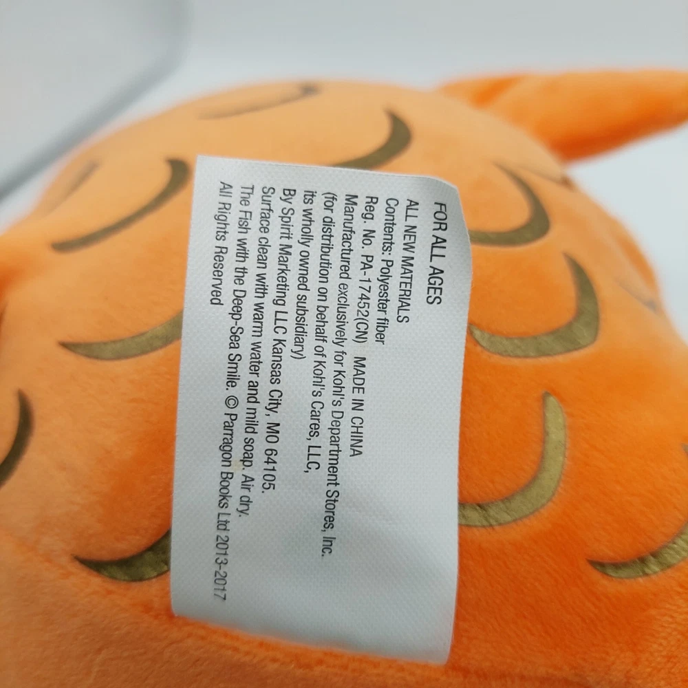 Recommended Age Range:For all agesSize:Small (6-14 in)Gender:Boys & GirlsColor:OrangeType:FishModified Item:NoBrand:KohlsCountry/Region of Manufacture:ChinaCharacter Family:Fish with the Deep-Sea Smithgtin13:Does not applyAge Level:12 Months & Under, 1-2 Years, 3-4 Years, 4-7, 8-11 Years, 12-16 Years, 17 Years & UpUPC:Does not apply