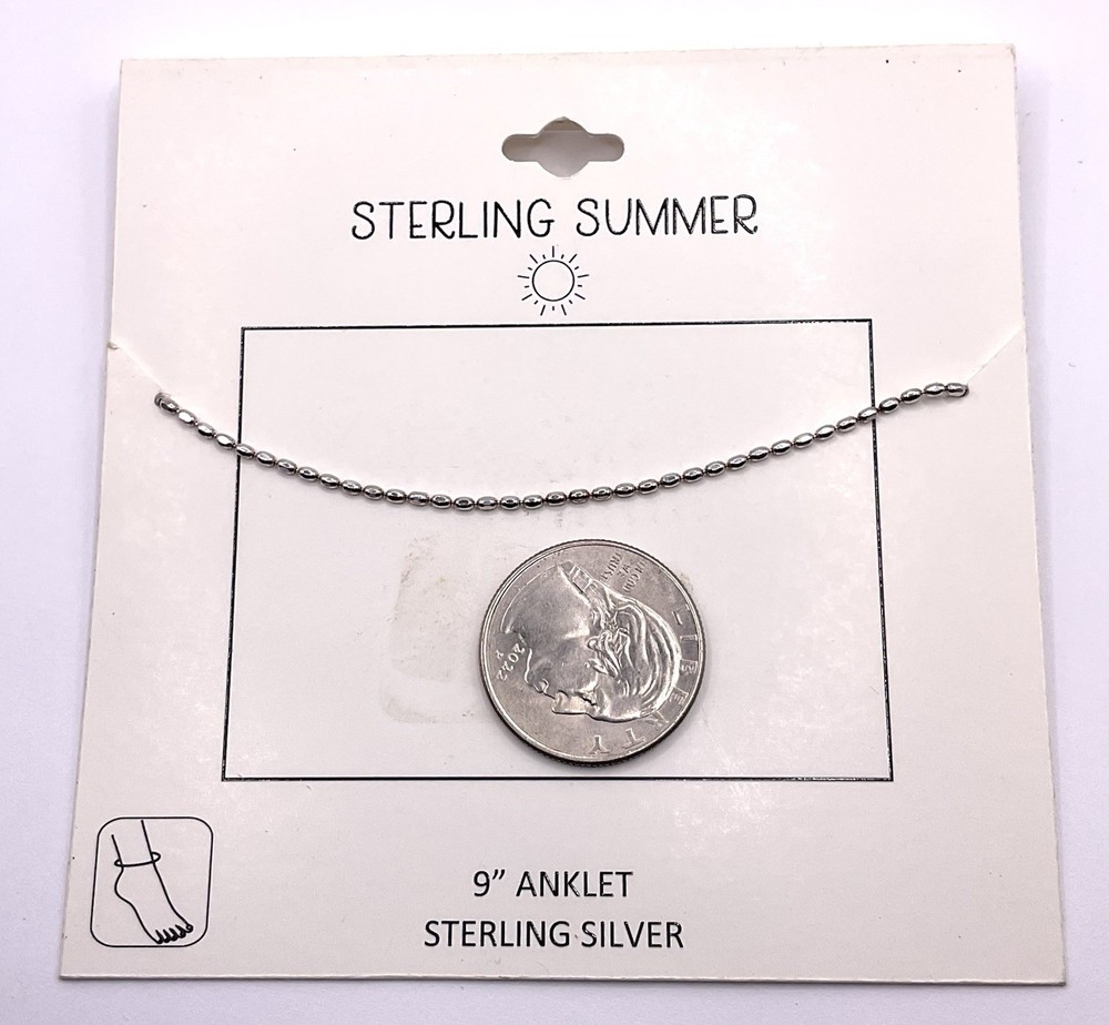 The Kohl's Summer Sterling Silver 925 Beaded Chain Linked Anklet is a stylish and elegant accessory perfect for the summer season. Made from high-quality sterling silver, this 9-inch anklet features a chic chain design with a beautiful beaded detail. The Italian craftsmanship adds a touch of sophistication to the piece, making it a versatile and fashionable choice for any outfit. Whether worn alone or paired with other jewelry, this silver anklet is sure to make a statement. We combine shipping.