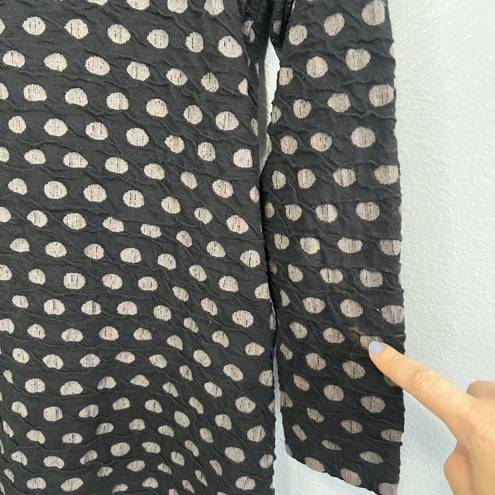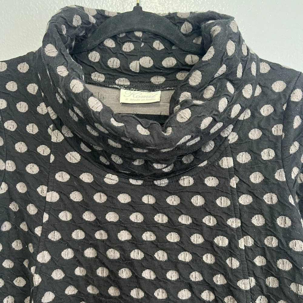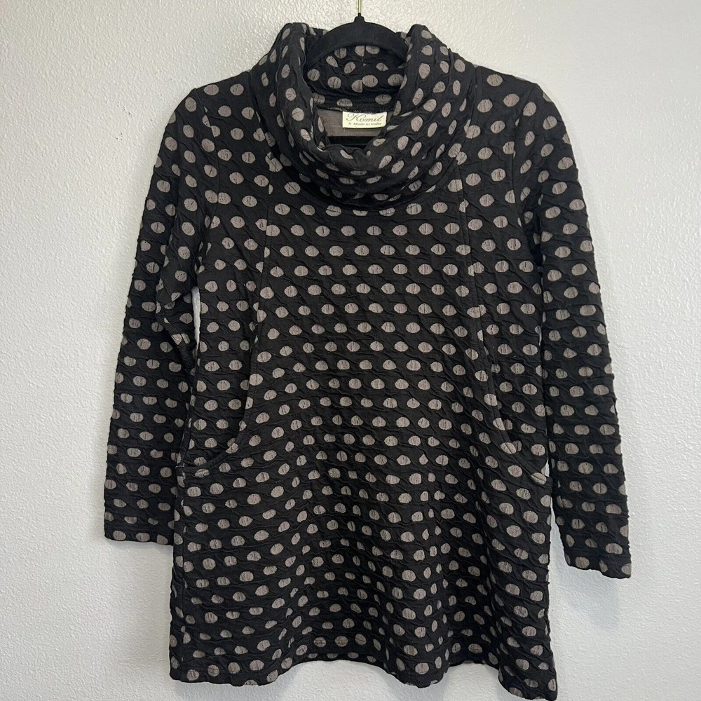 Komil Honeycomb Cowl Neck Long Sleeve Tunic - Women's size Small. Cotton blend top with a honeycomb pattern. Black and gray. Pockets. Made in India. Good pre-owned condition with light wear. Small bleach spot on the back arm. No rips or tears. Please see the photos for more condition and item details.