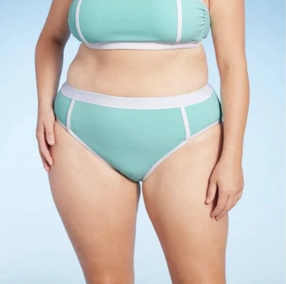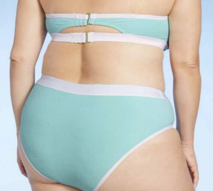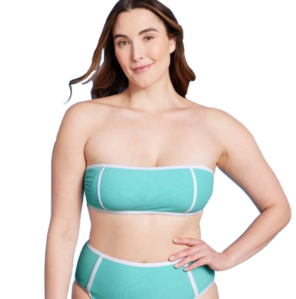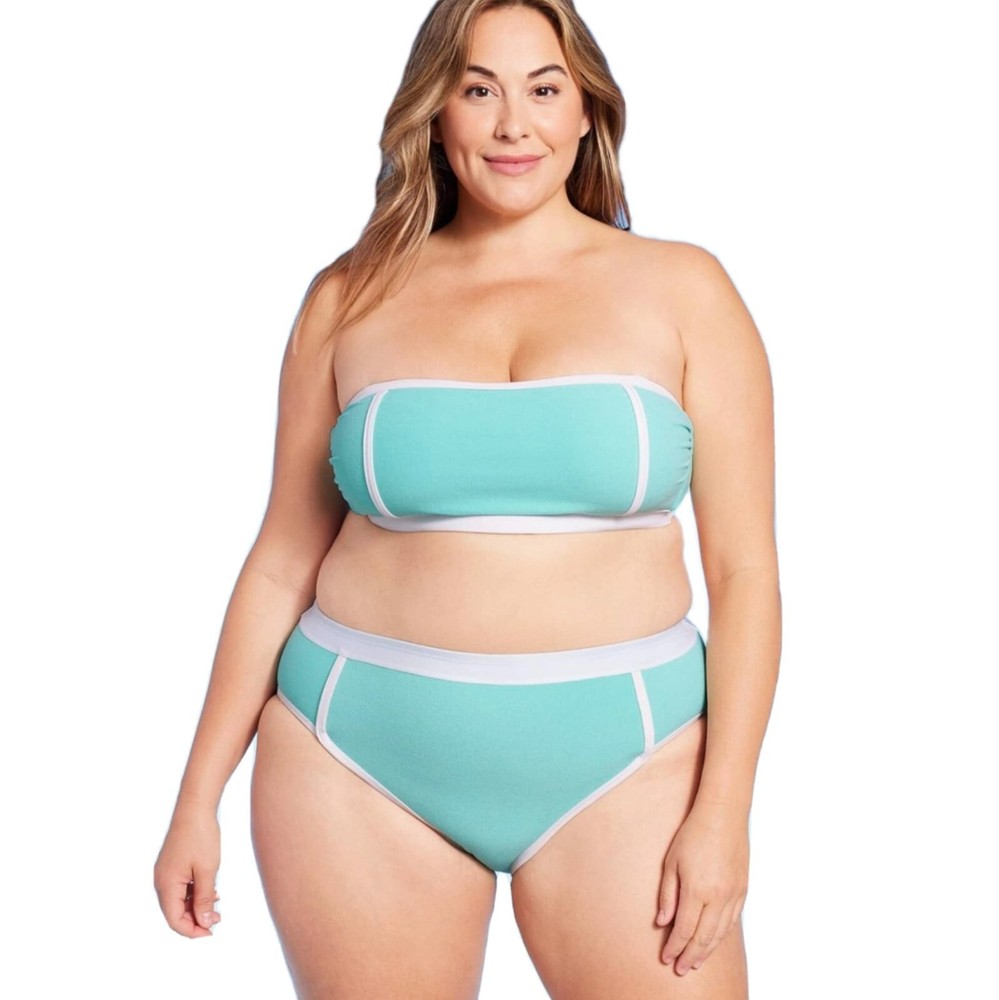 Kona Sol Women's Women's Plus Size Terry Textured Bikini - Sizes X, 1X, 2X, 3X Bottom - High Waist Leg Add a soft yet sporty look to your swim wardrobe with this Textured Solid High Waist High Leg Bikini Bottom from Kona Sol. This solid colored bottom features a flattering high waist with a high-leg design. It's detailed with chic white binding on the trim and front for a contrasting sporty look, and has a terry-textured finish for added interest. The stretchy fabric with elastic at leg openings lends comfortable movement and fit, while the opaque construction offers coverage for confident wear. Pair with the available matching bikini top for a coordinated look, or with other solid or patterned swim tops for an endless array of styling options. Kona Sol: Made for your day in the sun. 94% Nylon, 6% Spandex (Lining Polyester) Size: X (14W), Waist 38 Size: 1X (16W-18W), Waist 40 to 41.5 in Size: 2X (20W-22W), Waist 42 to 44.5 in Size: 3X (24W-26W), Waist 47 to 49 in Top - Bandeau Top Lend a sporty finish to your swim outfit with this Terry Textured Solid Bandeau with Binding Bikini Top from Kona Sol. This bandeau-style bikini top is made from soft, stretchy terry-textured fabric to keep your moving comfortably in and out of the water. It’s detailed with chic white binding on the trim and front for a contrasting sporty look. This women's swimwear top comes with detachable over-the-shoulder straps for multiple wearing options, a back hook-and-loop fastener to give a secure fit, and has removable cups that make it easy to customize your look to suit your style. Pair it with the available matching bottom or a wide variety of other bottoms for versatile styling options. 94% Nylon, 6%Spandex. Polyester Lining. Size X (14W) Bust 41 in Size 1X (16W-18W) Bust 43-45 in Size 2X (20W-22W) Bust 47-49 in