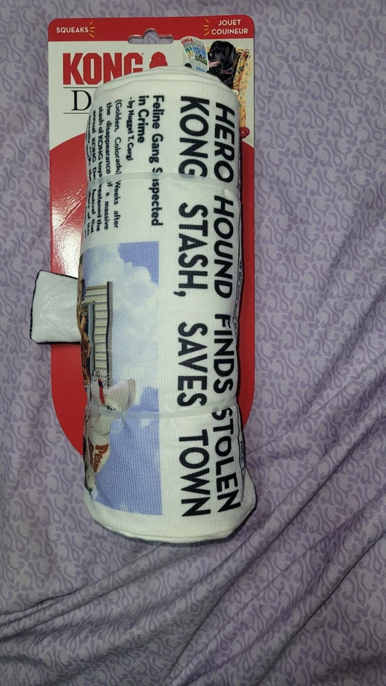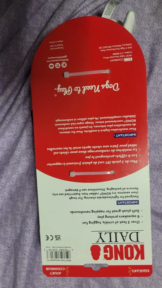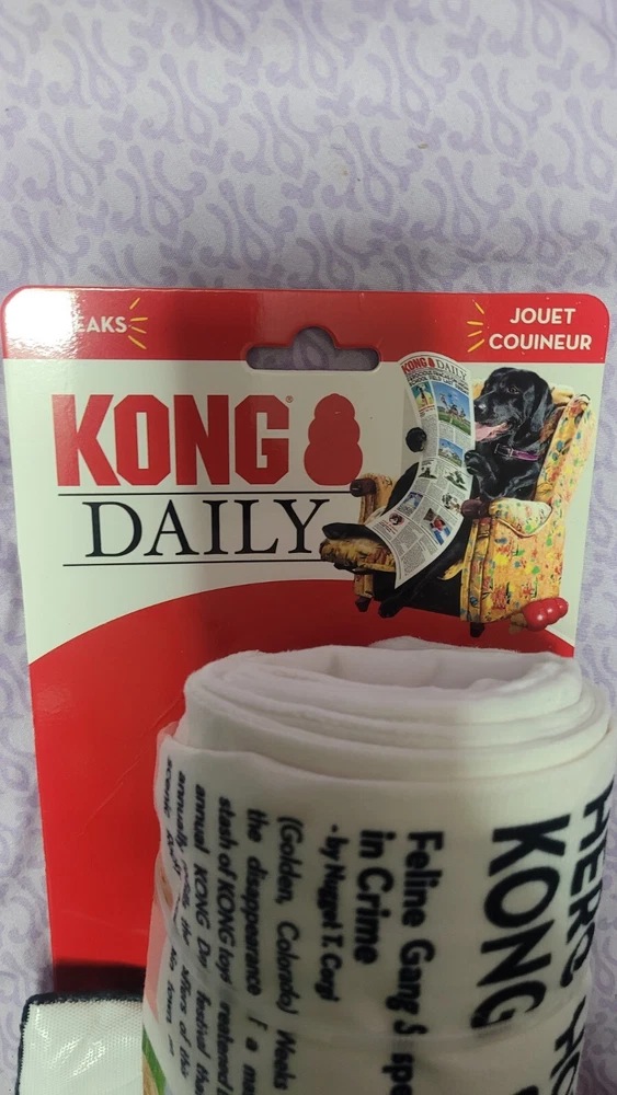 The "Kong Daily dog toy" is a fabric chew toy designed for medium-sized dogs. It is a product from the brand KONG and is suitable for providing entertainment and mental stimulation to dogs during playtime.