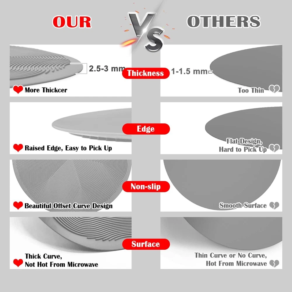 KooMall 12 10 8 Inch Multi-use Microwave Mat, Trivet, Pot 12+10+8 Gray Product Details Material: Silicone Color: 12+10+8 Gray Brand: KooMall Product Dimensions: 12"L x 12"W x 0.12"Th Shape: Rectangular Product Care Instructions: Dishwasher Safe Unit Count: 1 Count Manufacturer: KooMall Item Weight: 13.7 ounces Country of Origin: China Maximum recommended load: 15 Ounces Number of pieces: 3 Batteries required: No 【Why Choose Us】 Beautiful Offset Curve, Raised Edges design for easy grabbing. Deep Grooves design for distributing heat immediately. Allows you to fetch out the food immediately after Heating, Not too Hot, No need to Wait. 【Multi-Purpose】Can be as Microwave Mat, Trivets, Dish Drying Mat, Utensils Rest, Baking Mat, Pot Holder, Table Place Mat, Jar Opener, Coffee Coaster, Splatter Guard, Food Cover, Hot Pad for Kitchen Counter, etc. 【High Quality & Safety】The Multi-Purpose Mat is BPA Free, made of Food Grade Silicone, Support -40°F to 572°F (-40°C to 300°C). freezer, Microwave and Oven Safe. 【Easy To Clean】 Multi-Purpose Microwave Mat is designed with smooth grooves.It is easy to clean by water or in a dishwasher. Anti-Slip and naturally non-stick. 【3 In 1 Kit】Each Package includes 3 PCS Microwave Heat Resistant Mat with different size 8 inch,10 inch,12 inch. Different size suitable for different occasions.