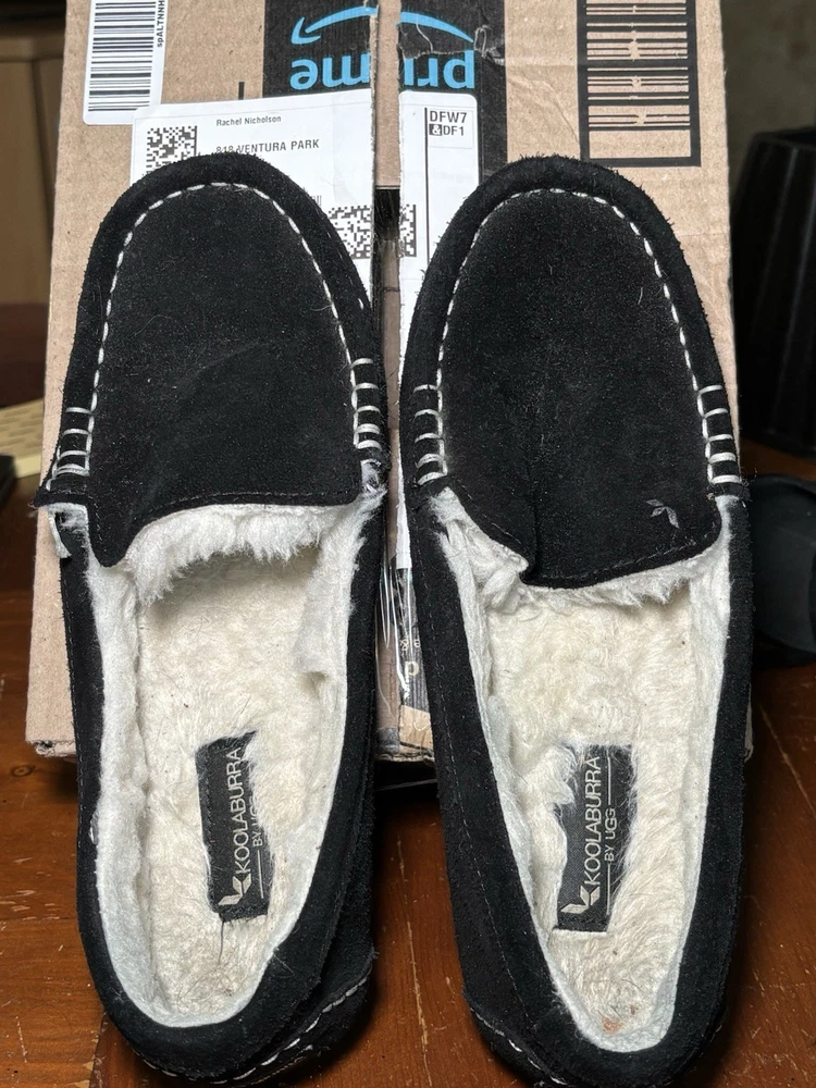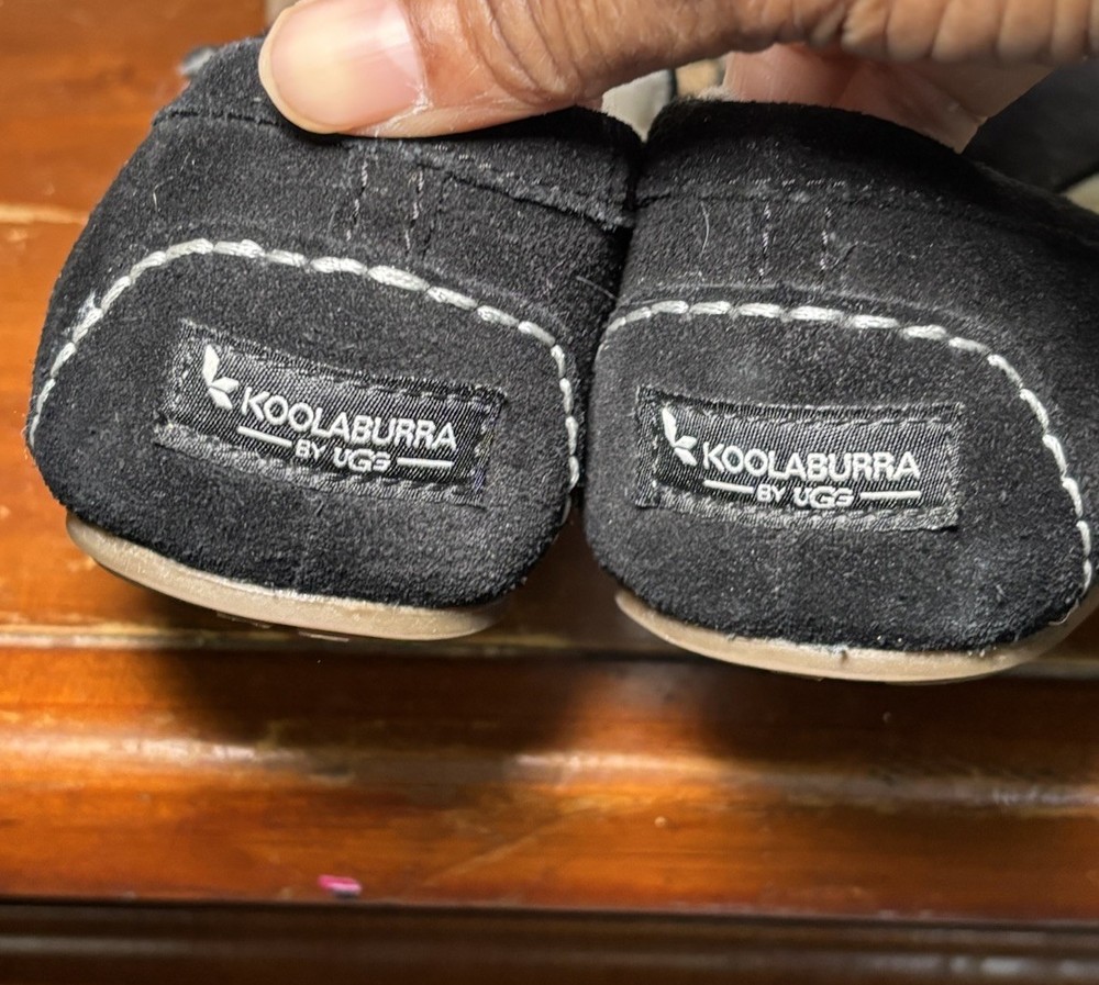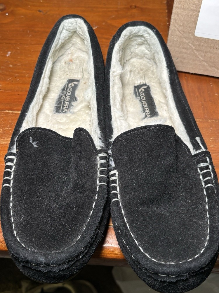 Koolaburra by UGG Black Suede Slippers Women’s 7W Wide Shearling Lined. Condition is Pre-owned - Excellent. Shipped with USPS Ground Advantage.