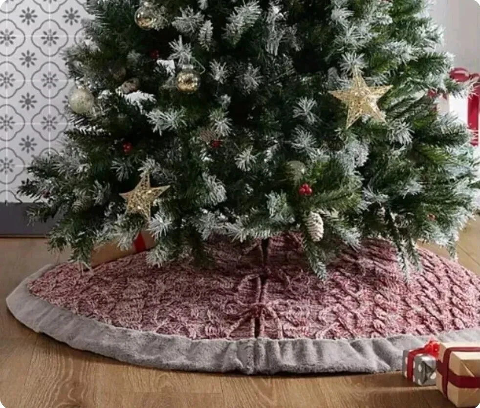 Enhance your Christmas decor with this beautiful Koolaburra by UGG Carla Cable Knit Tree Skirt. The circular shape and rich red color are perfect for any Christmas tree. The 54-inch width provides ample space for all your gift boxes. Crafted from high-quality knit fabric, this UGG tree skirt embodies both luxury and comfort. The faux fur upper material adds an extra touch of elegance. The UGG brand has ensured that this tree skirt is durable and long-lasting. Perfect for adding a cozy, warm atmosphere to your home during the holiday season.
