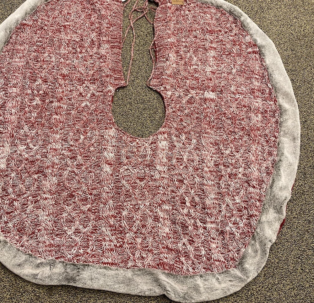 Koolaburra by UGG tree skirt Christmas red Carla Cable Knit faux fur trim