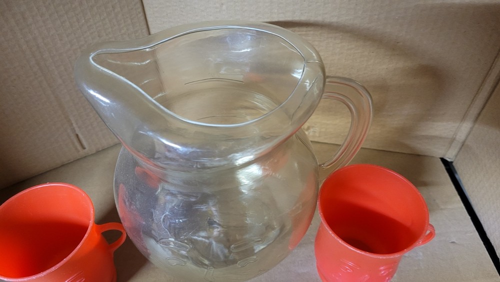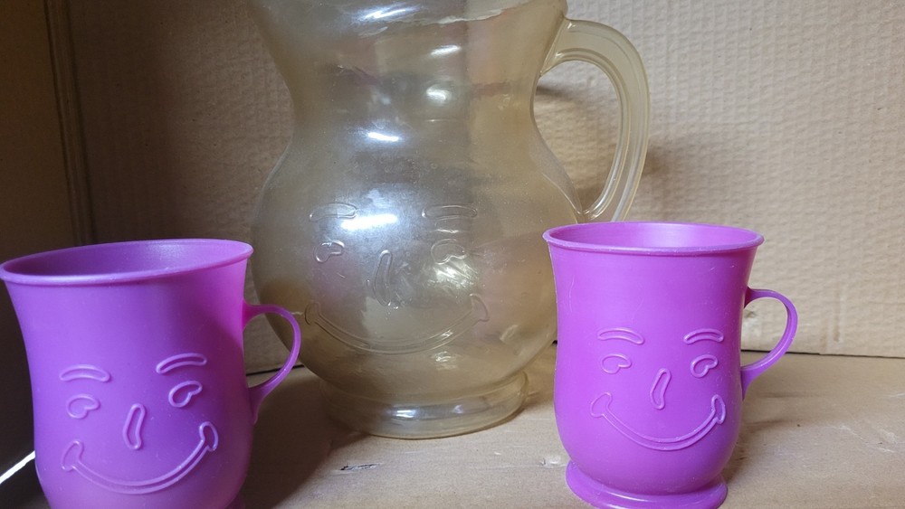 lot of kool-aid pitchers and cups all in good shape no leaks or cracks