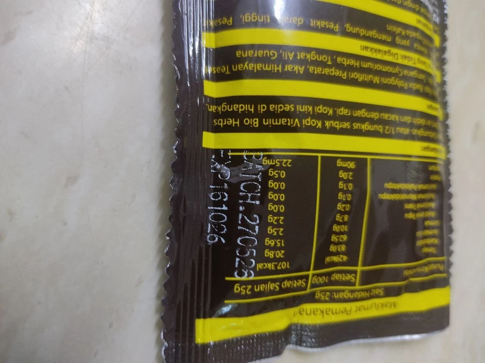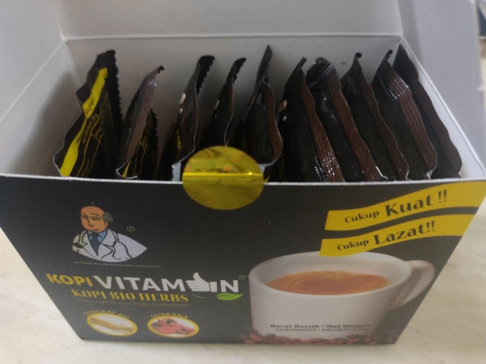 Kopi Vitamin Bi0 Herbs Original Instant Coffee for Men Stamina Kopi Vitamin/ Vitamin Coffee, a power product for husbands. The taste is delicious and the nutrients are great. The blood flow must be smooth and restore the body system very effectively. Male energy is restored very efficiently. You can definitely feel the energy flowing throughout your body. Try it now. And rule the world of men at will. Benefits Enhances stamina & vitality Provides optimum performance during strenuous activity. Restore & sustain optimal energy levels during rigorous tasks. Optimizes the functions of the reproductive endocrine system. Strengthens bodily health & boosts the immune system. Why is KOPI VITAMIN so effective? KOPI VITAMIN does not cause a man to be sexually aroused. KOPI VITAMIN is only effective if you are aroused ONLY. To understand how it works you need to understand the mechanism of how a man gets an erection. When you are sexually stimulated, the nervous system in the erectile tissue of your penis releases nitric oxide (NO). Nitric Oxide stimulates an enzyme that produces something called guanosine monophosphate. Guanosine monophosphate relaxes smooth muscle cells. One result of this is that the arteries to your penis are dilated and blood can flow into your penis more easily. Another result is that the erectile tissue itself is filled with blood. Both of these processes cause an erection. In gredients Creamer, Sugar, Coffee, Prepared Polygonum Multiflorum Root, Himalayan Teasel Root, Turmeric Rhizome, Cynomorium Herbs, Tongkat Ali, Guarana, Maca. Serving Suggestion: Take 1 sachet (25g) as needed OR 1 sachet every 2 days. Empty sachet into 120ml of hot water and stir well. May enjoy it hot or cool. What's In The Box 1 Box - 25 g x 10 sachet per box Expiry Date 16/10/2026 Payment information - We accept all payment accepted by eBay. - If payment hasn't been received within 5 days, unpaid item case will be automatically filed. Shipping - Shipping using SingPost to all country / some location will use economy delivery due on location. ETA to United States normally 5-18 days. You may opt to Expedited Shipping using DHL Express it may take 1 to 5 business days depending on customs processing etc. - O ur handling time is within 1-3 business days. Your package will be shipped with valid tracking number. - All product is packed, layered with bubble wrap to reduce damages during shipment delivery. - In the very unlikely event that your package is lost/damaged during post, we will issue either full refund or replacement. - As you may know, we can't ship the item on Malaysia weekends and public holidays. Custom Duties/VAT - Import duties, taxes, VAT and/or additional charges are not included in the item price or shipping charges. - These charges are buyer's responsibility. Please check with your country's custom before making your purchase. Return - We want you to be 100% satisfied. That's why we offer you a 30-Day Money Back Guarantee. - Return shipping is the buyer's responsibility unless the return is a result of our mistake or otherwise stated. Other - Customer satisfaction is very important to us. We will do our best to make all our customers satisfied with our product or service. - If you have any questions or problems, please send us a eBay message. We will respond within 24 hours. - If you don?t receive the email from us or eBay, please check your SPAM folder.