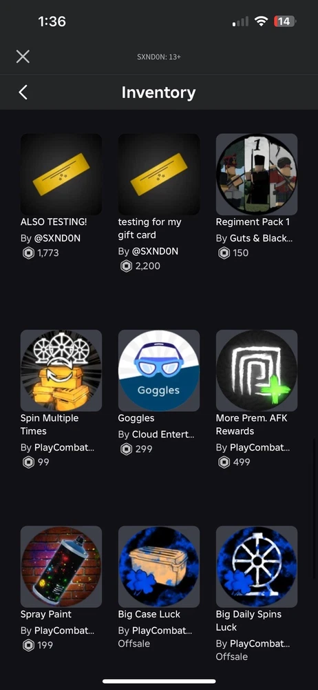 I do not use Roblox anymore, I have this account and am selling it for a low price. It is a 2017 account. It has everything in Combat Warriors (not including new mythicals) both 12M$ cars in Vehicle simulator. All cars in car crushers 2. Lots of emotes, accessories and characters in Evade. It also includes the rare and limited Cy the Cyborg, 6 pages of game passes. All combat warriors game passes, all stop it slender 2 game passes.