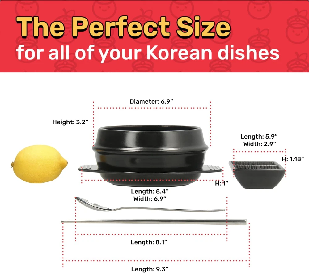 Store New Arrivals Add to Favorite View Feedback Contact Korean Stone Pot Set (7-Piece, 38.7Oz with Hot Pot Grip), Ceramic Pots for Cooking, Clay Cooking Pot, Korean Stone Bowl, Earthenware Claypot, Egg Tofu Stock Soup, Bibimbap, Dolsot, Ttukbaegi Description Item model number CC0001 Manufacture Year 2024 Size Medium Number of Pieces 1 Color Black/Tan Material Ceramic Country of Origin China Is Dishwasher Safe Yes Item Weight 3.25 pounds Is Oven Safe Yes Handle Material Plastic With Lid No Utensil Compatibility Chopsticks, Spoon Special Feature Oven Safe, Microwave Safe, Dishwasher safe Product Dimensions 6.9 x 6.9 x 3.15 inches Manufacturer cookware [Elevate your culinary experience] with our Korean Stone Pot Set. Sizzle from stovetop to table, serving straight from the pot. 100% premium ceramic ensures even heating & a healthier cooking process. [Versatile cooking] From Korean bibimbap to Japanese ramen to casserole, this clay pot cookware does it all. Gas, oven, or microwave? Sure! Dishwasher safe for easy cleanup. Handwashing preferred. [Thoughtful details] Giftable pop-art premium packaging. Our extra-long (9.4") high quality stainless steel chopsticks are designed for both beginners and larger hands, ensuring a comfortable grip. [Great Value in a box] Our 7-piece set has everything you need for delicious dishes. Included aluminium hot pot grip provides a secure, non-slip hold, making transferring the korean pot safe and easy. [Extended warranty] Register for your dolsot pot set and get an additional eBook featuring mouthwatering recipes with delightful comics, inspiring you to join Captain Cranberry's culinary adventure. Product Description Introducing the 7-Piece Korean Stone Pot Set Elevate your home cooking with our authentic Korean Stone Pot Set. Crafted from premium ceramic, these versatile pots are perfect for slow-cooking Korean classics like bibimbap and stews and international dishes like mushroom risotto and french onion soup. Cook up a storm with our Korean Stone Pot Set Complement every kitchen Craving the authentic flavors and sizzling experience of a Korean restaurant? Our 7-Piece Korean Stone Pot Set is your secret to culinary excellence. Crafted with tradition in mind, these premium ceramic pots are designed to elevate your home cooking to new heights. 100% high quality ceramic Crafted from high-quality, non-toxic ceramic, our stone pot set is built to last. They also double glazed to ensure that they are non-porous and would not absorb liquids. The excellent heat retention ensures even cooking, while the versatile design is perfect for a wide range of dishes. From hearty stews to vibrant bibimbap, these pots deliver restaurant-quality results every time. Uparalleled convenience Our set offers great convenience where the versatile design allows for the pot to be used on the stovetop, oven, and microwave, making it perfect for busy lifestyles. The included hot pot grip and long, high quality stainless steel utensils enhance your dining experience, while the dishwasher-safe (except hot pot grip) make cleanup a breeze. Product Highlights Oven Safe, Microwave Safe, Gas Stove safe Scratch-resistant and Non-toxic Good Heat Retention Dishwasher Safe Exceptional Features (It's the little things that count) Searching for that perfect gift for foodies? Our packaging was custom designed in-house by our designers for that "pop-art" feel, making it an excellent choice for gifting, and perfect for kitchen and culinary explorers. Captain Cranberry stands behind the quality of our sets, register online and also get our eBook featuring mouthwatering recipes such as Korean classics like Dwenjang Jjigae, Ddukbaegi Bulgogi, and International choices like French Onion Soup. We also included more comics and surprises for you to find out. Elevate your kitchen with our stylish and functional hot pot set. Order yours today and discover the joy of home cooking! Always missing a accessory or stainless steel chopsticks? Our thoughtfully curated 7-piece Korean Stone Pot Set is the answer to the hassle of finding the correct utensils. We have carefully put together everything which you need to effortlessly prepare delicious dishes and never miss out on anything. Our complete set includes: - 100% Premium Ceramic Korean Stone Pot - Heat Resistant Trivet tray - Stainless steel chopsticks and spoon - Aluminium Alloy Hot Pot Grip - Captain Cranberry red silicon mat - Sauce Accessories tray Each set is suited for 1 person. Still using mittens or towels to bring your hot pots off the stove safely? We kept you in mind. Our hot pot grip is your kitchen's new best friend. Its ridges provide a secure grip on your pot and ensures that it stays put whilst you carry it off the stove. Avoid silicon mittens or towels which may accidentally "dip" into your delicious soup. The grip safely grips into the pot's clever overhang design to minimise spills, whilst allowing you to effortlessly transfer sizzling, delicious food from stove to table. Our Pot is also designed with grooves to safely sit on top of gas stovetops, keeping your kitchen clean and mess-free. Featuring mouthwatering recipes & delightful comics Captain Cranberry Promise Here's the secret we uncovered: Great-tasting, healthy food doesn't require a Michelin-starred chef. It just needs the right tools and a dash of inspiration. Captain Cranberry is your fearless guide, scouring the seven seas (or rather, continents) to bring you the finest, most innovative cookware. Our selection is focused on fun, innovation, and premium quality. But the journey doesn't end there! We have also meticulously curated a treasure trove of hand-selected, mouthwatering recipes to ignite your creativity in the kitchen. Join us on this extraordinary expedition! We've poured our hearts into bringing Captain Cranberry cookware to life, and we'd love for you to join us in a culinary adventure. With your help, we can turn every kitchen into a harbor for delicious adventures. ABOUT